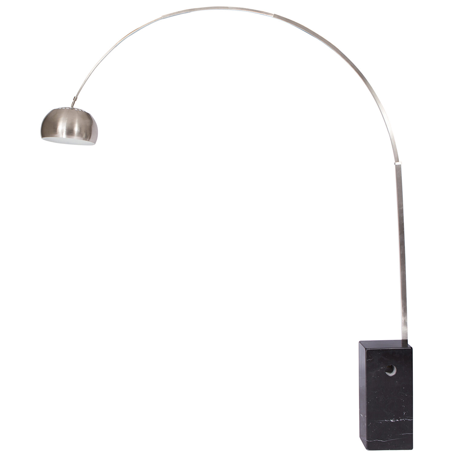 Mid-century modern design, this decorative arc light will brighten any room with it's refined style. A thick Italian Marble base holds the tall stainless steel arm in place while a white reflective shade interior adds a warm glow to any room you decide to place it in.The base of light source travels from one part of the room and spans to its desired location all while adding a modern flair. More often than not, iconic pieces like the arched Arco Lamp take hold and become classics-not on looks alone, but by offering practical solutions to design difficulties.Features: