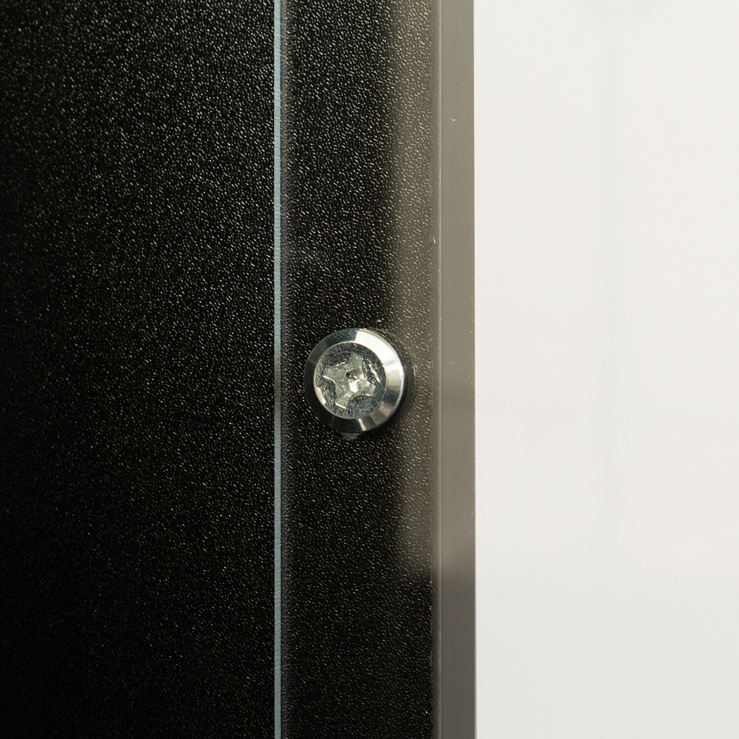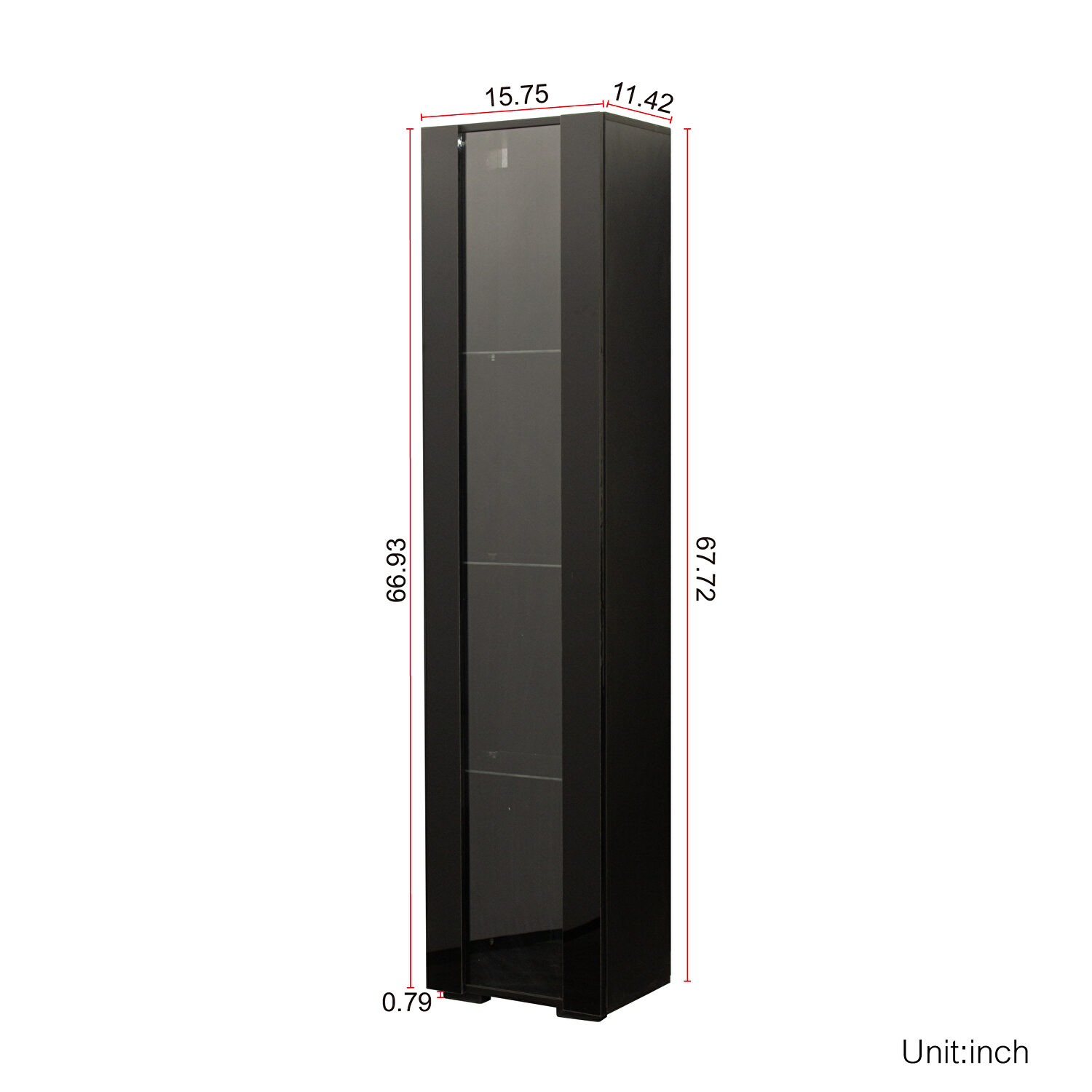 Black finish side cabinet with aluminum strip lamp. Three aluminum strip lamp with American standard (monochrome, blue).Features: