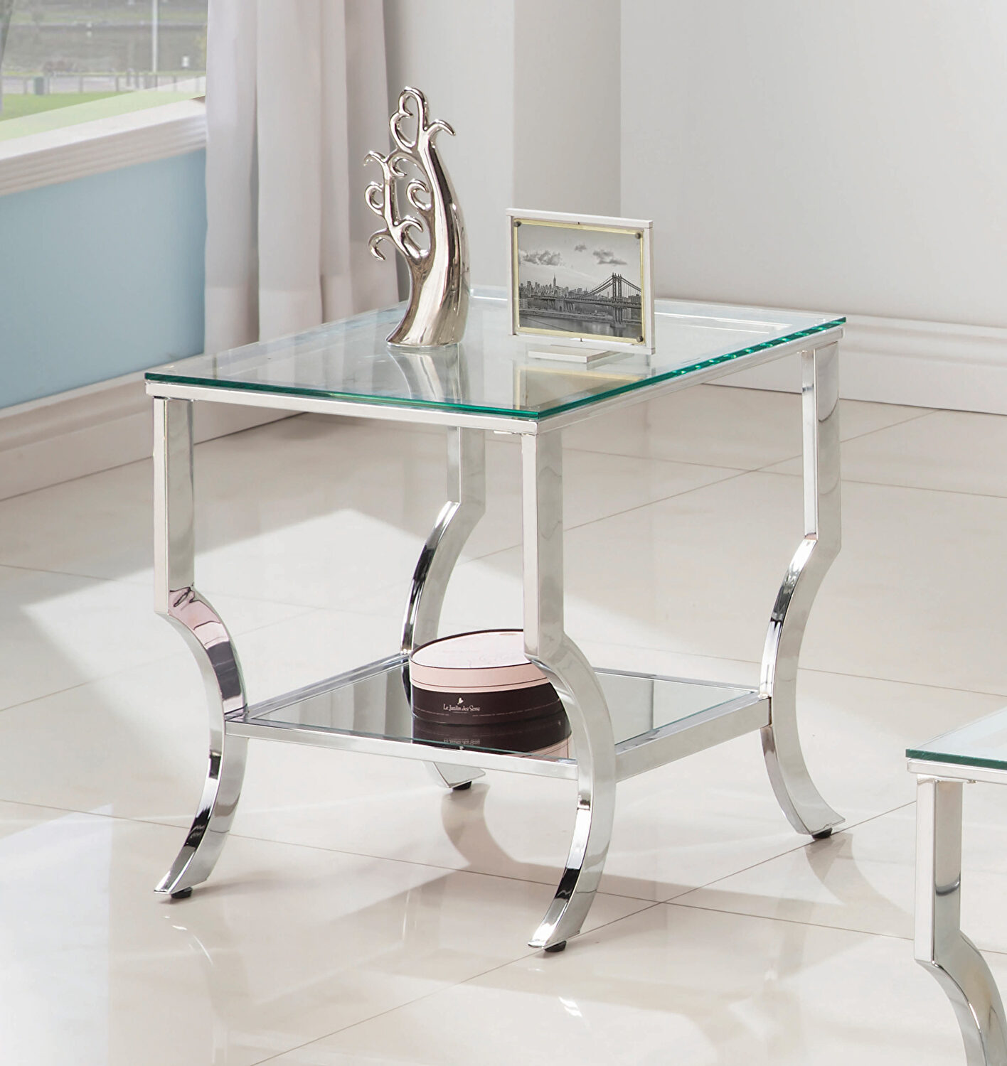 Brighten your interior with a touch of glitz and glamour by including this contemporary side table in dazzling chrome.Model: CS337