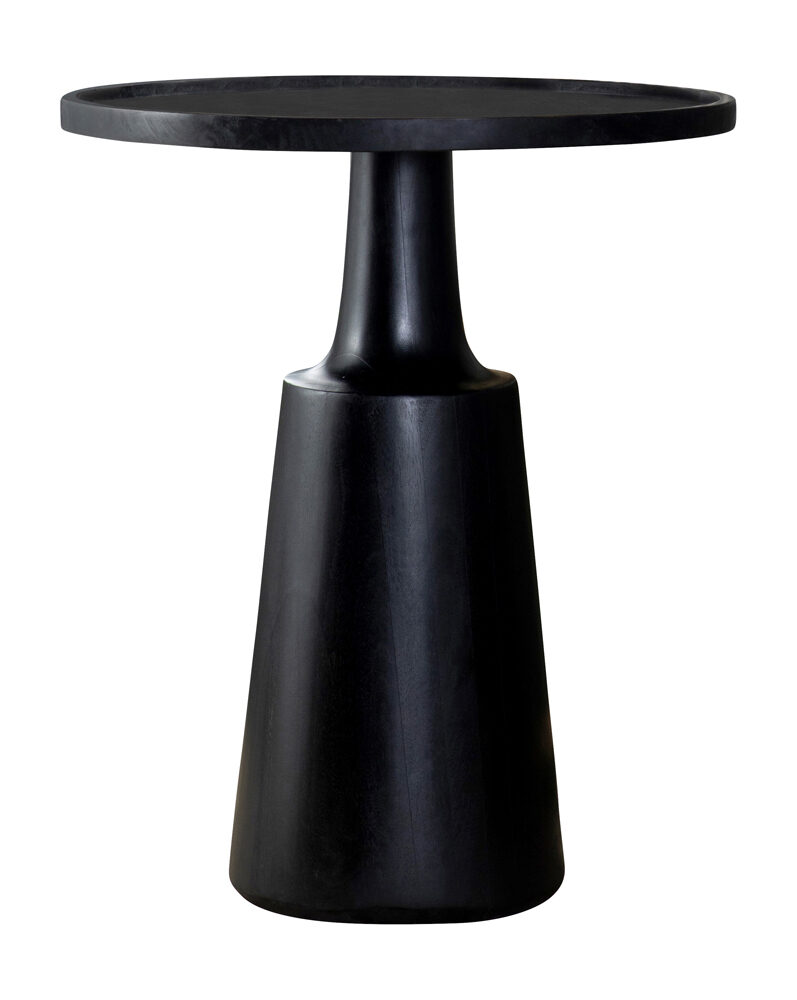 This global-inspired round accent table offers a striking design for any space. An elegant, solid contoured base tapers toward the top that supports a round table surface. Raised edges define the silhouette even further and keep items in place. Made of an eco-friendly mango wood, this accent table rests comfortably beside a small accent chair or acts as a standalone furniture piece to showcase decor. Allow it to hold a small table lamp or collection of family photos.Features: