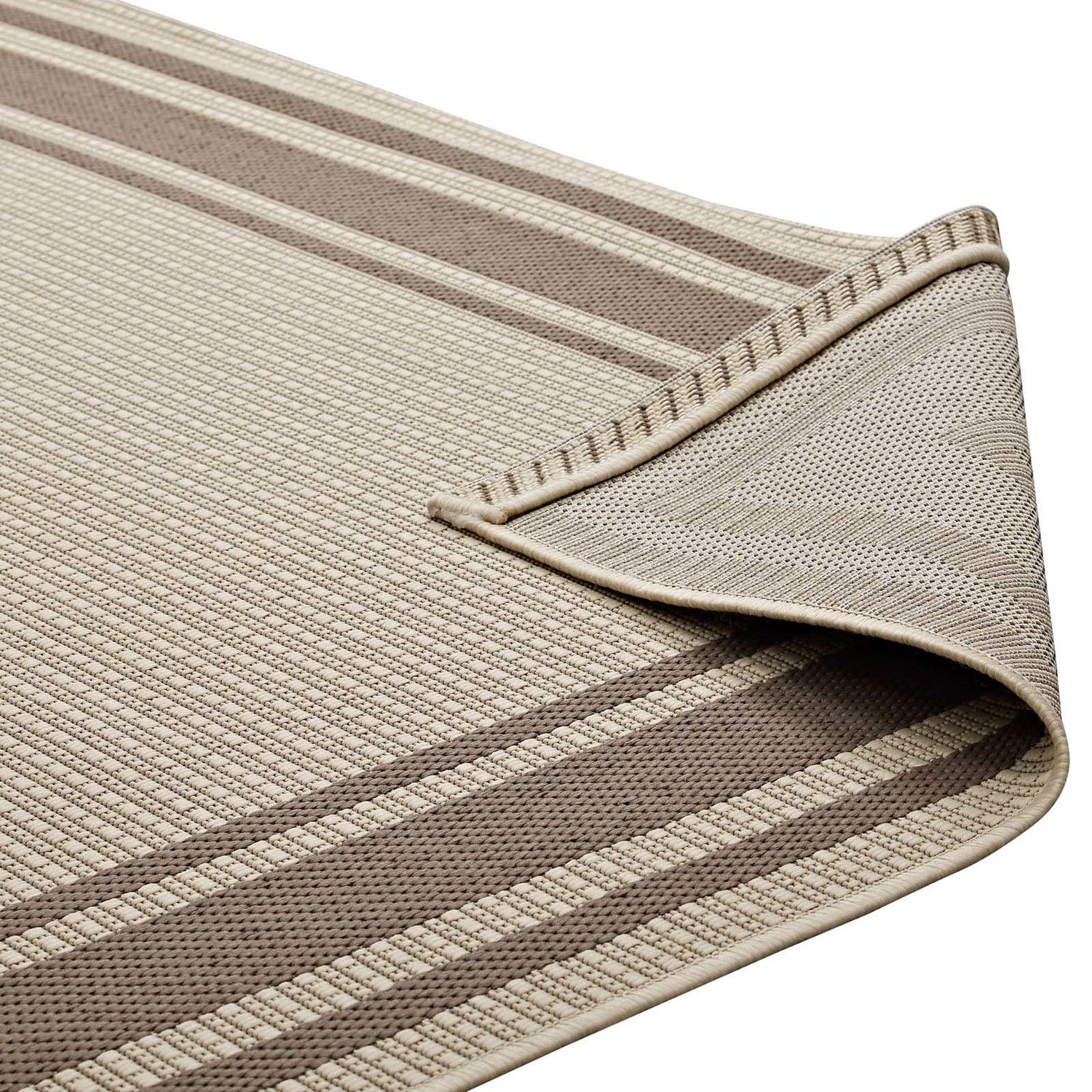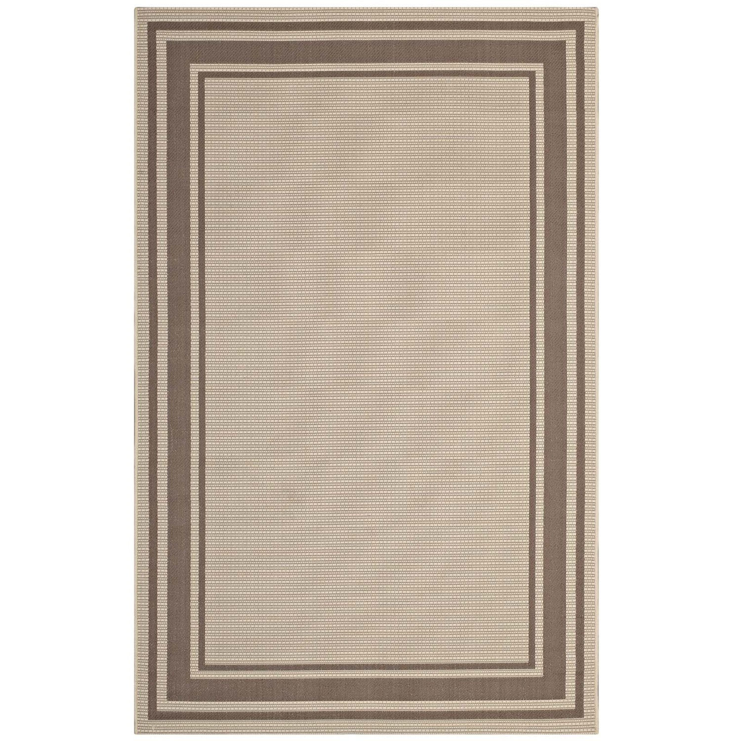 Make a sophisticated statement with the Rim Solid Border Borderline Indoor and Outdoor Area Rug in dark/light beige. Patterned with an elegant design, Rim is a durable and soft machine-woven polypropylene rug that offers wide-ranging support. Featuring a linear design with a low pile weave and gripping rubber bottom, this all-weather area rug is a perfect addition to the outdoor patio, porch, deck, or inside the house in the living room, bedroom, kitchen or dining room. Rim is a family-friendly fade and stain resistant rug with easy maintenance. Hose down or vacuum periodically. Create a contemporary play area for kids and pets in high-traffic areas while protecting your floor from spills and heavy furniture with this carefree décor solution.Model: Rim Beige 8x10