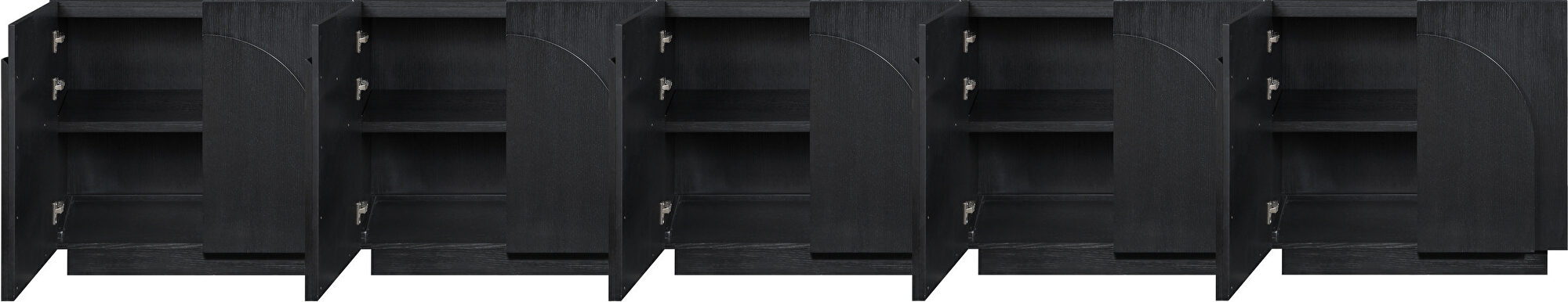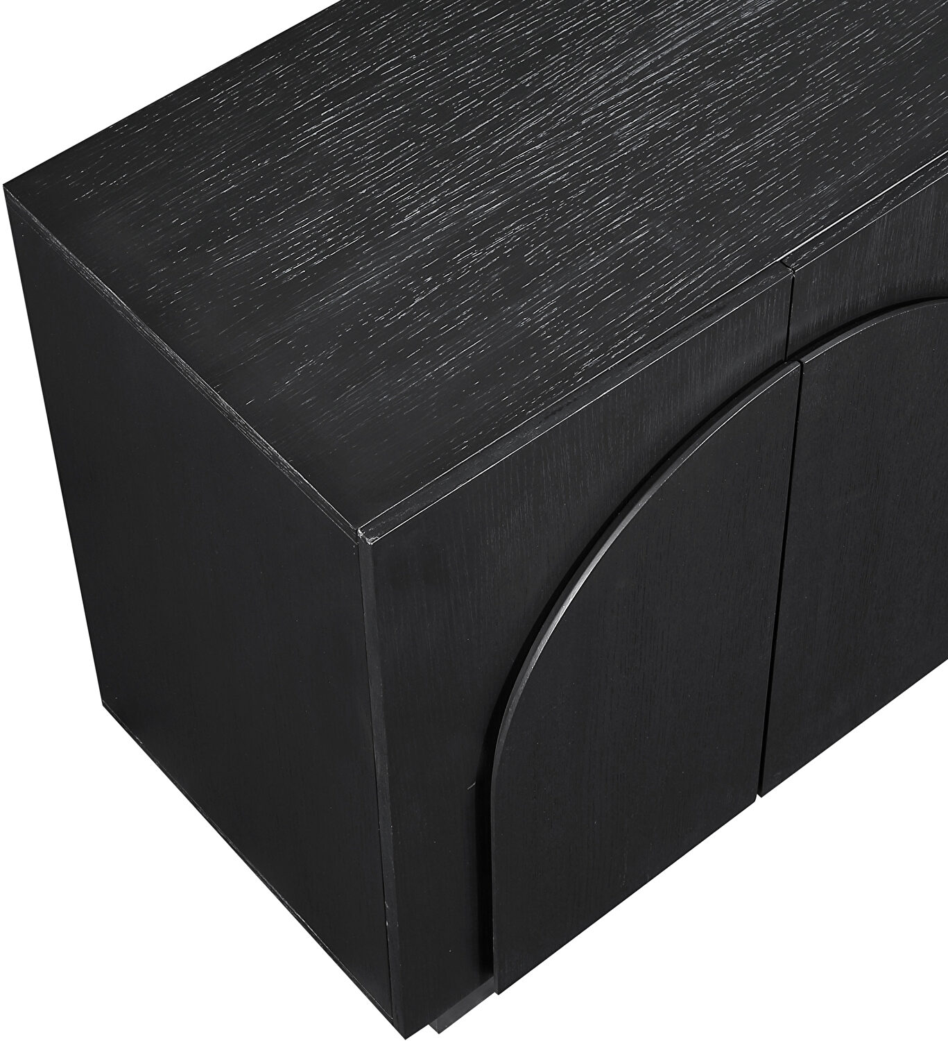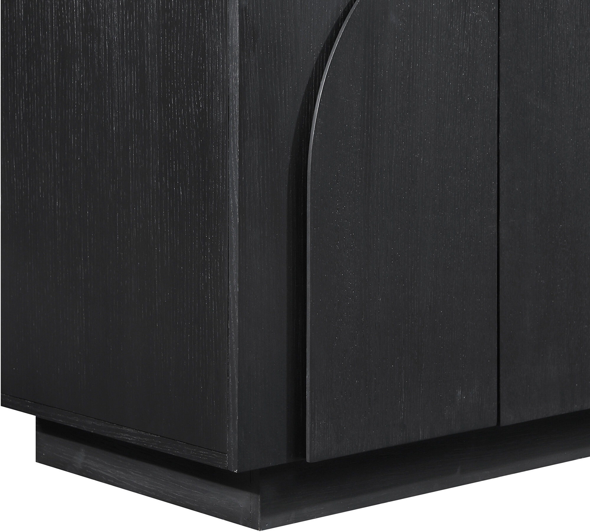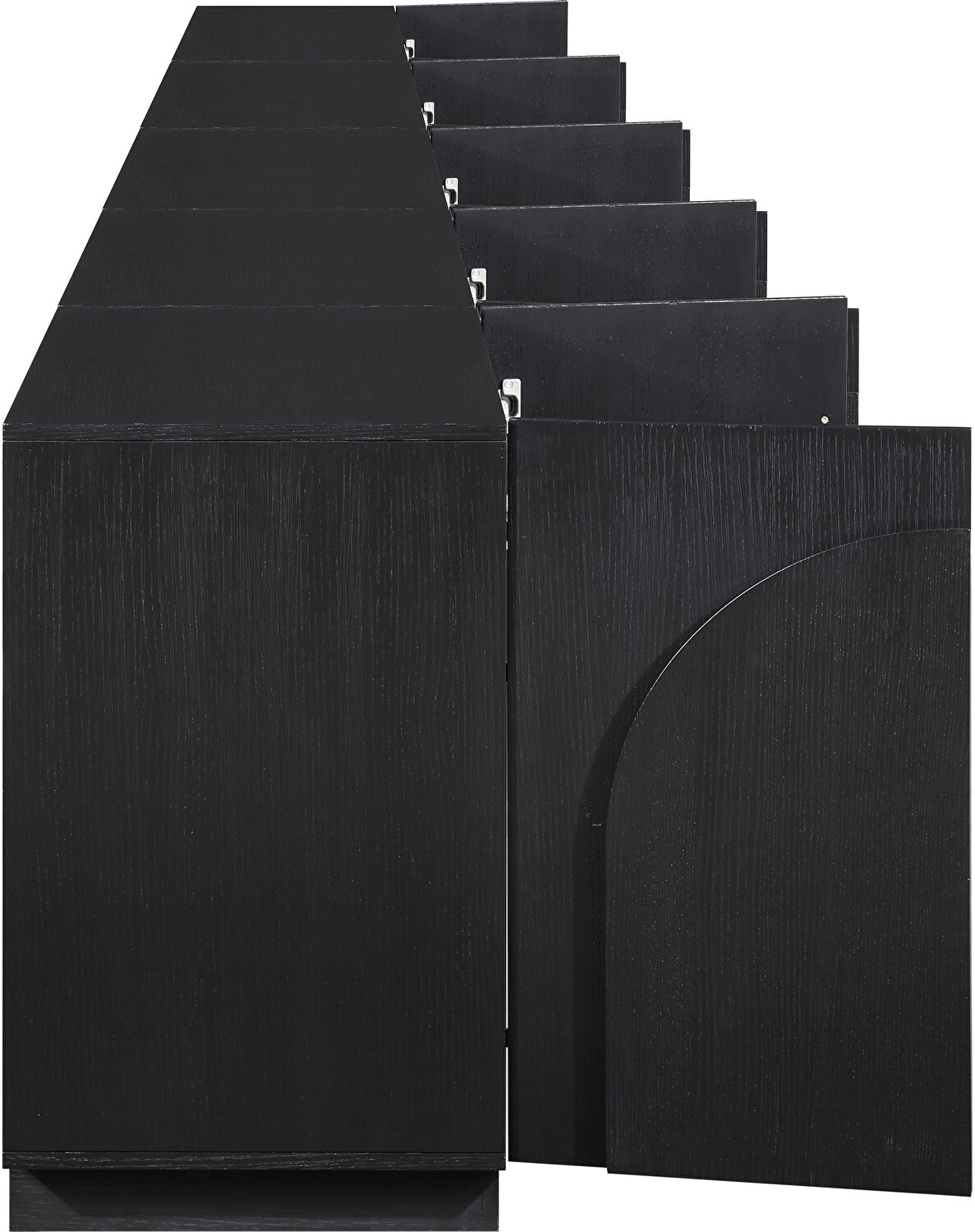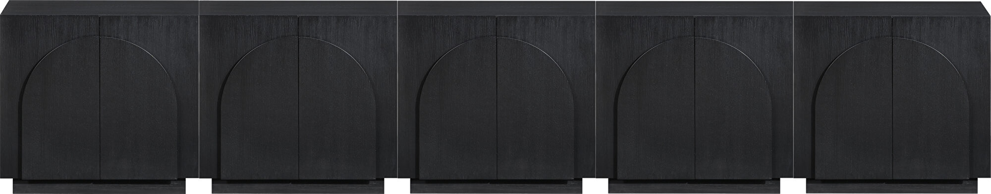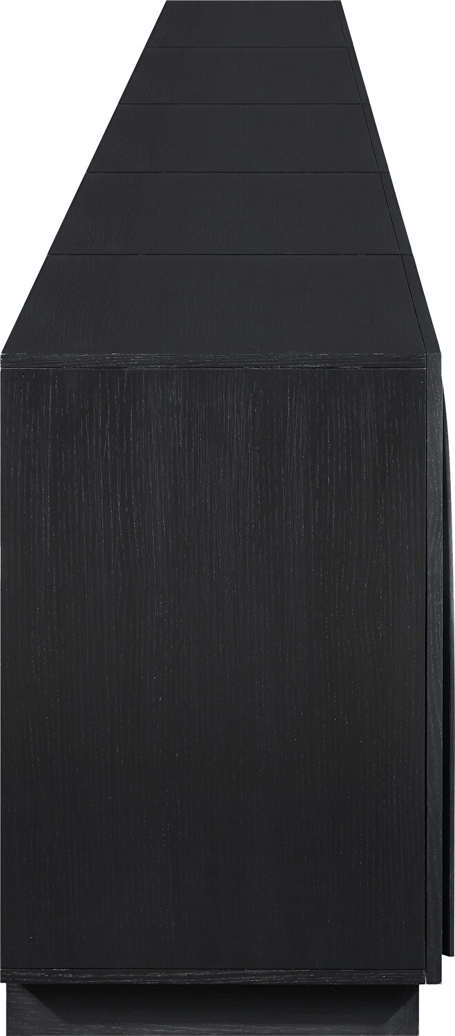 Elevate your living space with the Navona 5pcs sideboard, a masterpiece of design that combines functionality with aesthetic appeal. Crafted with a rich black oak veneer, this sideboard exudes elegance and sophistication, making it the perfect addition to any contemporary home. Its sleek form is inspired by the timeless beauty of Art Deco, featuring graceful curves that bring a touch of class to your decor.The Navona isn't just about looks; it's built to adapt to your changing needs. Behind its beauty lies a practical feature—concealed latches that allow you to link multiple units together. This innovative design means you can create a custom, cohesive storage solution that grows alongside your space. Whether you're looking to enhance your dining area or add stylish storage to your living room, the Navona sideboard offers both beauty and versatility in one package.
