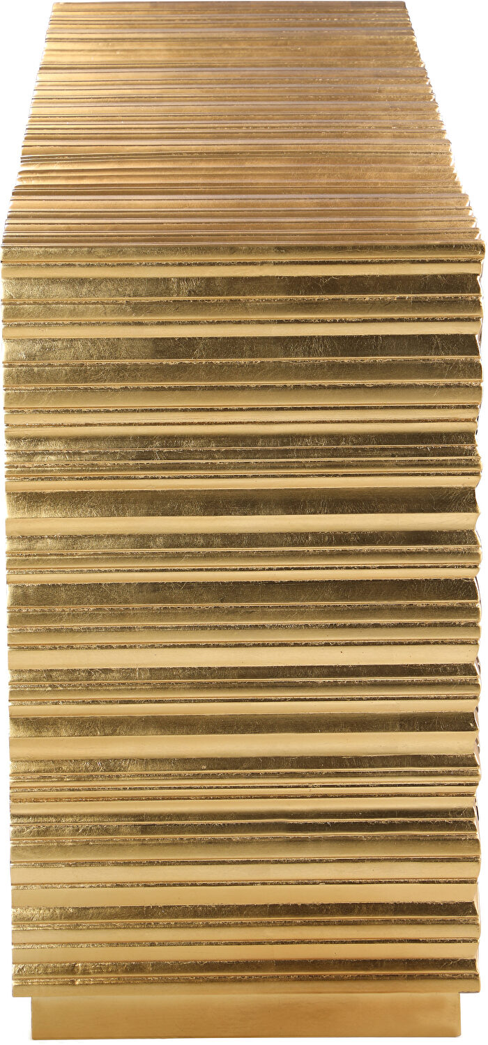 Elevate your dining area with the sheer elegance of the Golda sideboard buffet a luxurious fusion of style and practicality. This exquisite piece is masterfully crafted with detailed hand carvings that converge into a captivating starburst pattern, offering an artful touch that will dazzle in your contemporary setting. Each curve and line shines with the opulent glamour of a gold leaf finish, adding a rich, glittering allure that won't go unnoticed.Beyond its striking appearance, the Golda buffet is a bastion of functionality. Swing open its doors to reveal a generous storage space, meticulously designed to accommodate all your dining essentials from extra plates and serving implements to cutlery and linens. This sideboard doesn't just complete your room; it sets the tone for memorable gatherings and showcases your eye for sophisticated home décor.