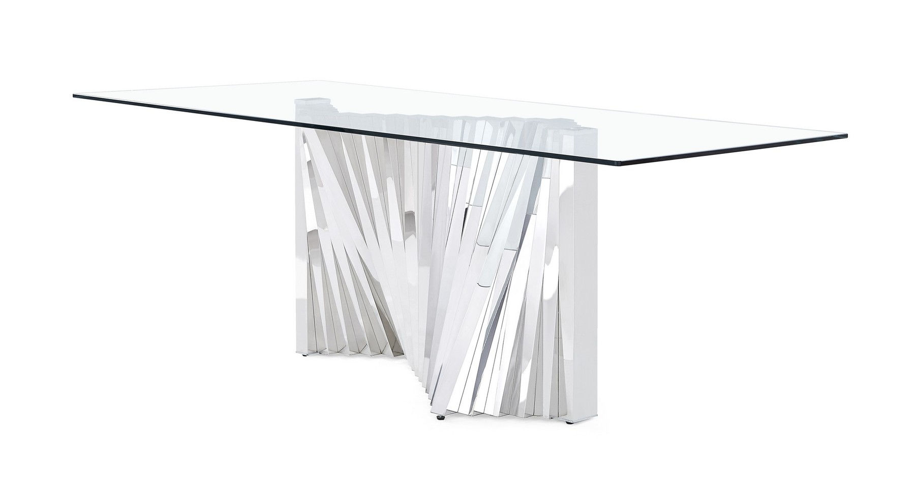 Absolutely stunning contemporary mirrored base rectangular clear glass top dining table. This unique table comes with variety of dining chairs in both black and white finishes.Features: