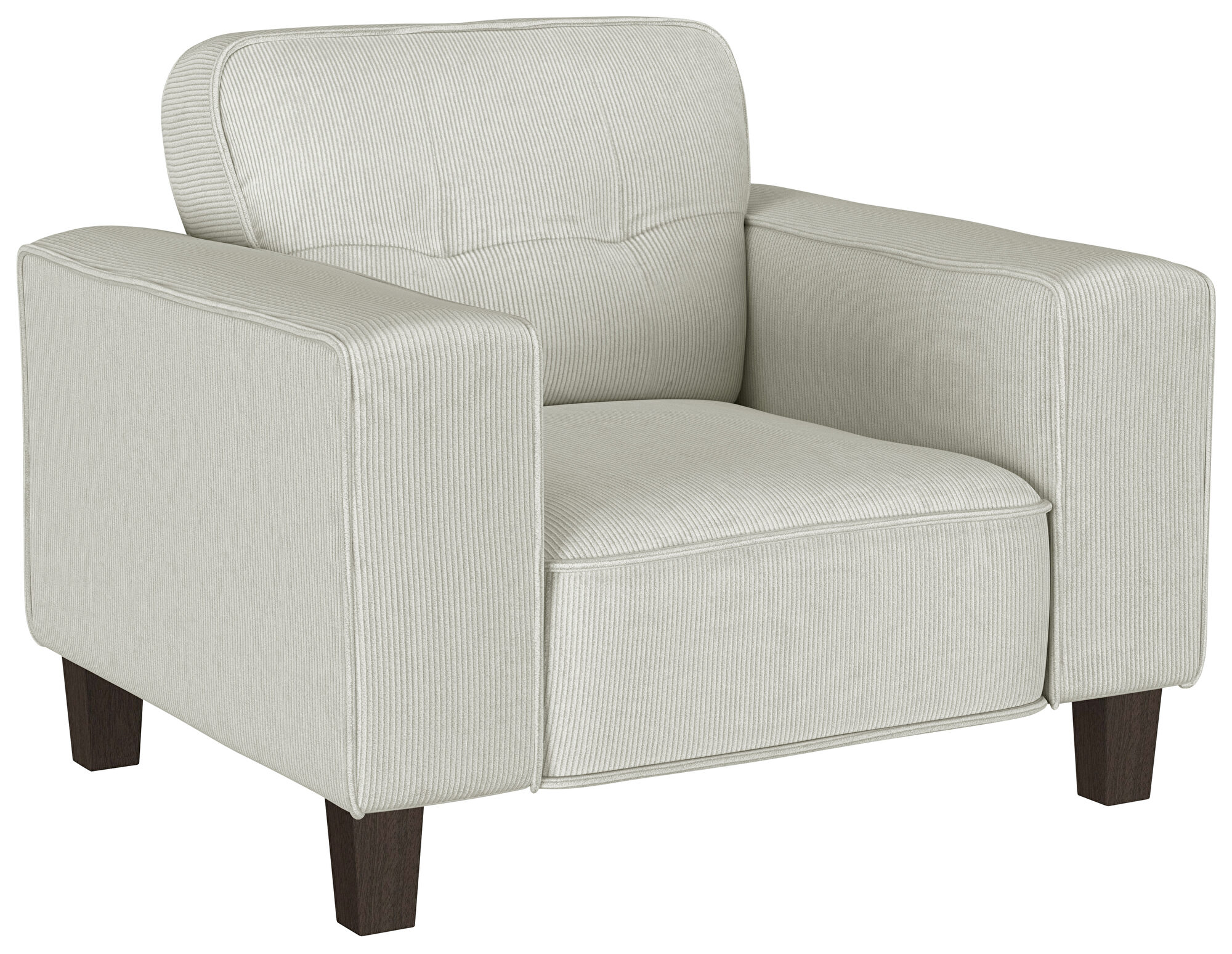 Introducing the Deerhurst Collection – a sophisticated blend of mid-century allure and contemporary comfort, designed to elevate your living space. This chair is offered in a choice of two elegant hues: a modern griege, as seen here, or a deep charcoal gray fabric. Both options promise to harmonize with your existing decor while making a refined statement.Each piece in the Deerhurst Collection features a plush, tufted backrest that not only adds visual interest but also enhances the depth and comfort of the furniture. The neutral upholstery is carefully selected to provide a versatile backdrop for any room, while the high-density foam cushions envelop you in unmatched comfort, perfect for relaxing after a long day.