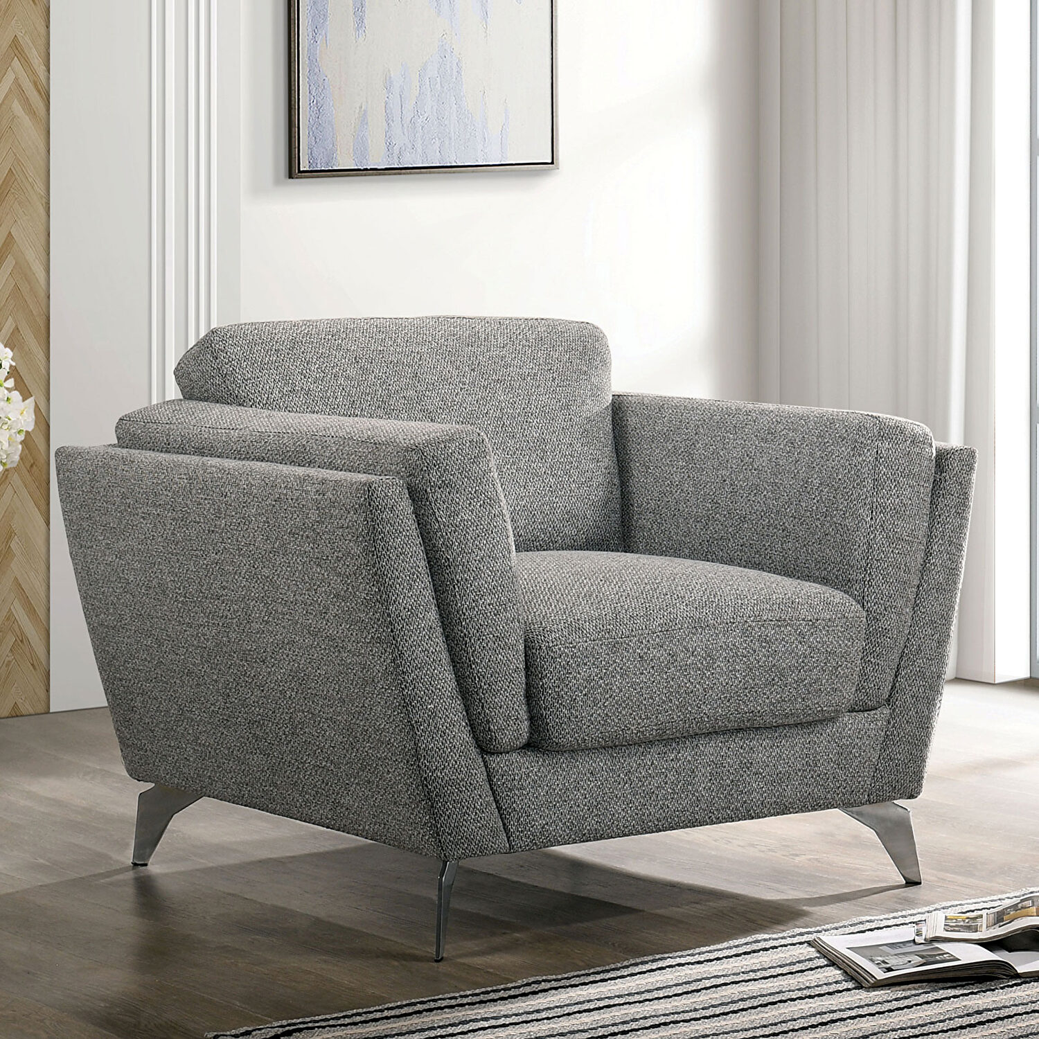 SKU: CM6214-CHAdelene mid-century modern chair in gray tweed-like fabric