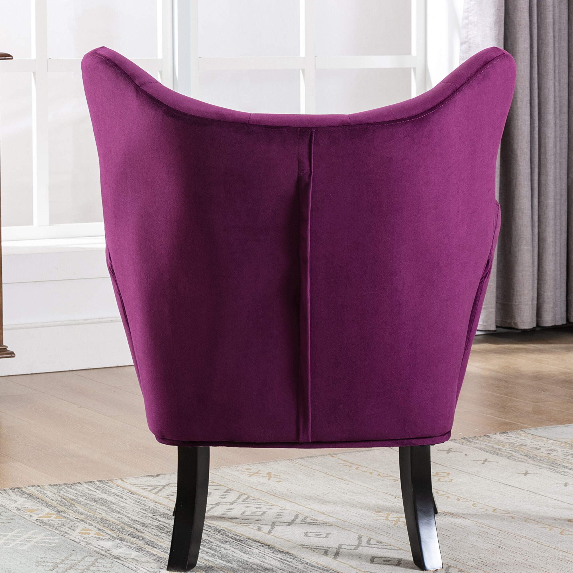 W633 purple velvet wingback modern tufted accent chair