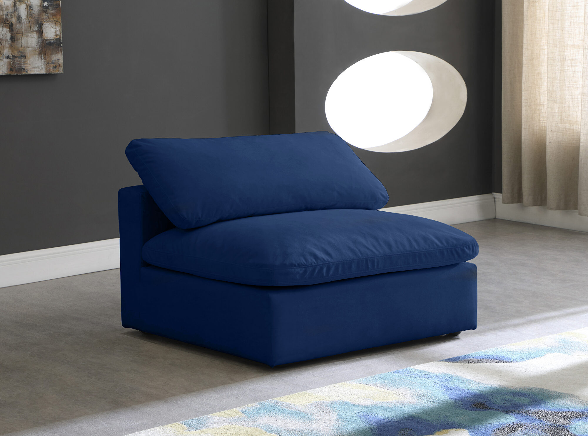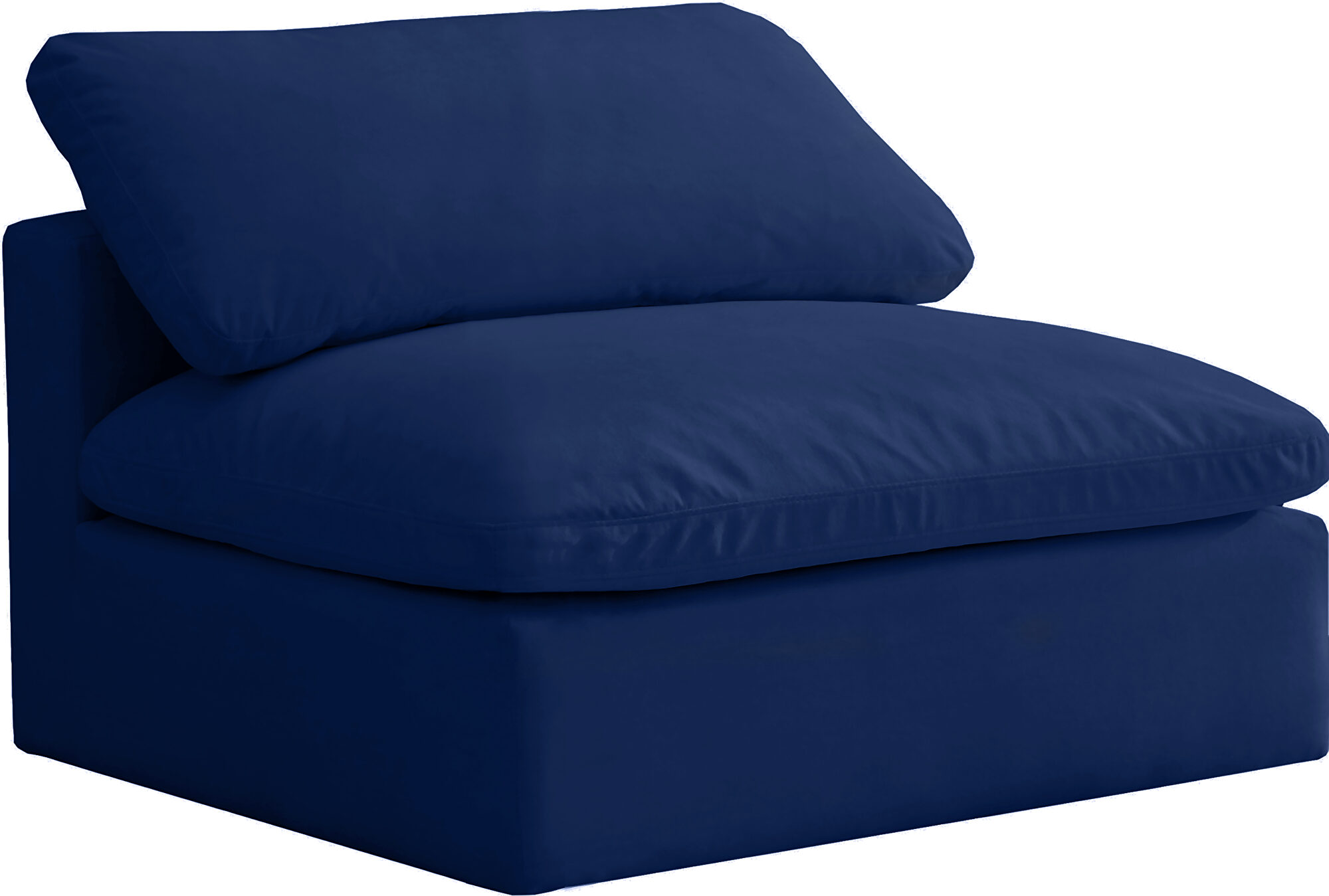 Velvet navy fabric armless chair, part of modular collection.Features:
