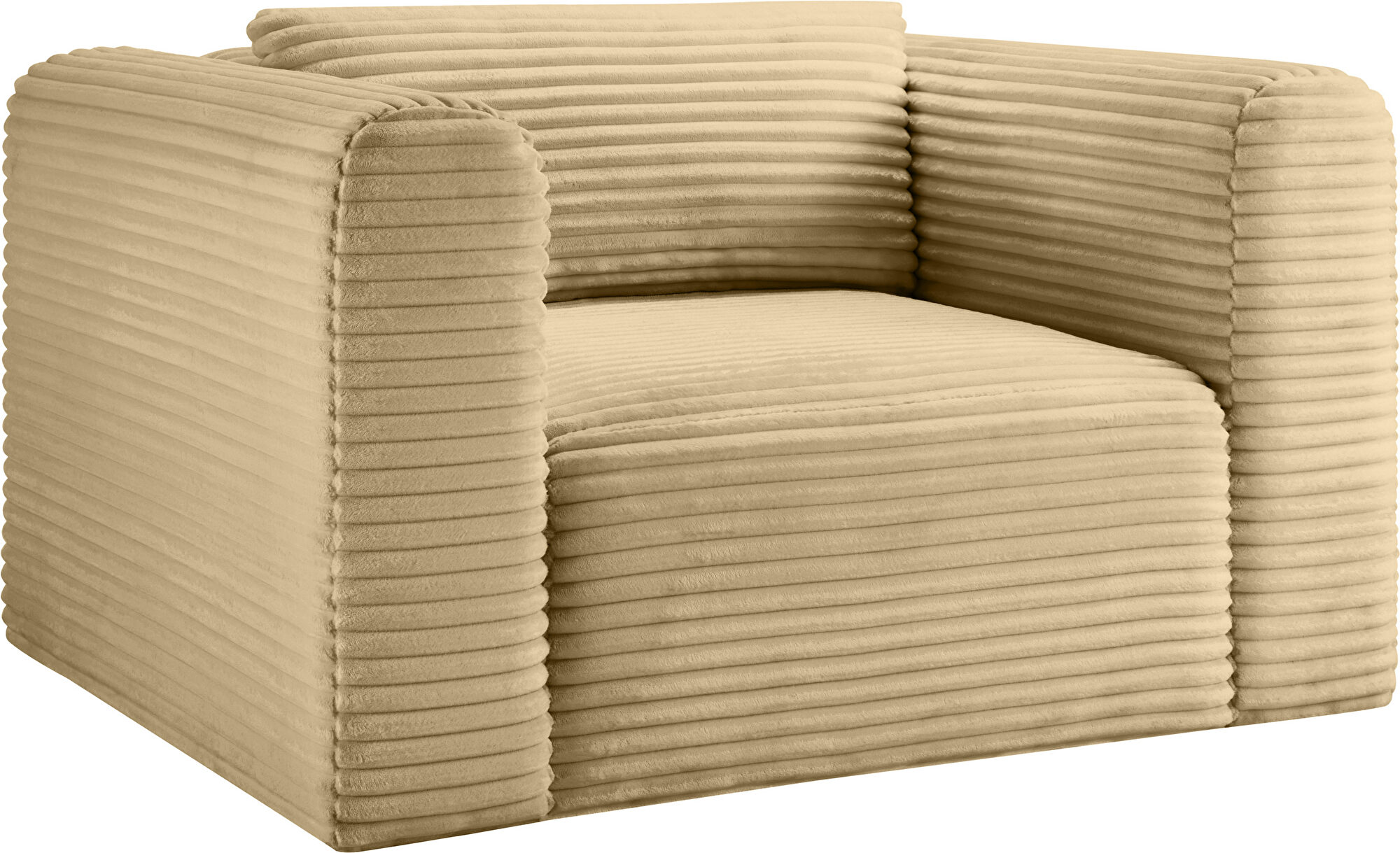 Elevate your living space with the Shaggy Camel Corduroyarmchair, where luxury meets functionality. Draped in a sumptuous, soft furry-textured corduroy fabric, this chair invites you to experience comfort like never before. The bold, 1-inch-wide corduroy wales add a contemporary edge to its appearance, making a statement in any room.Crafted for both sophistication and endurance, the chair's high-performance fabric offers peace of mind with its water-repellent and stain-resistant properties, preserving the sectional's allure for years to come. Sink into the plush foam seating, meticulously designed to provide a supportive and cozy retreat after a long day.