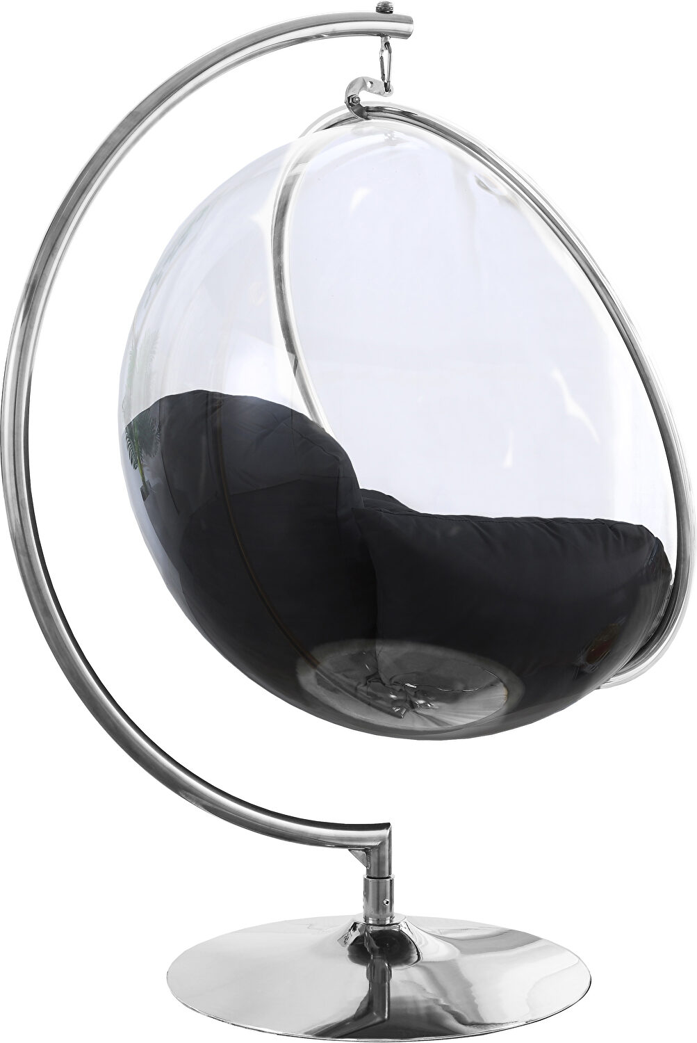 Elegant and eye-catching, the stunning black fabric Luna acrylic swing bubble accent chair (2 Boxes) is great addition to your patio, bedroom, living room or actually pretty much any space in your home. Comes with few option cushions, shown here w/ black cushions.Features: