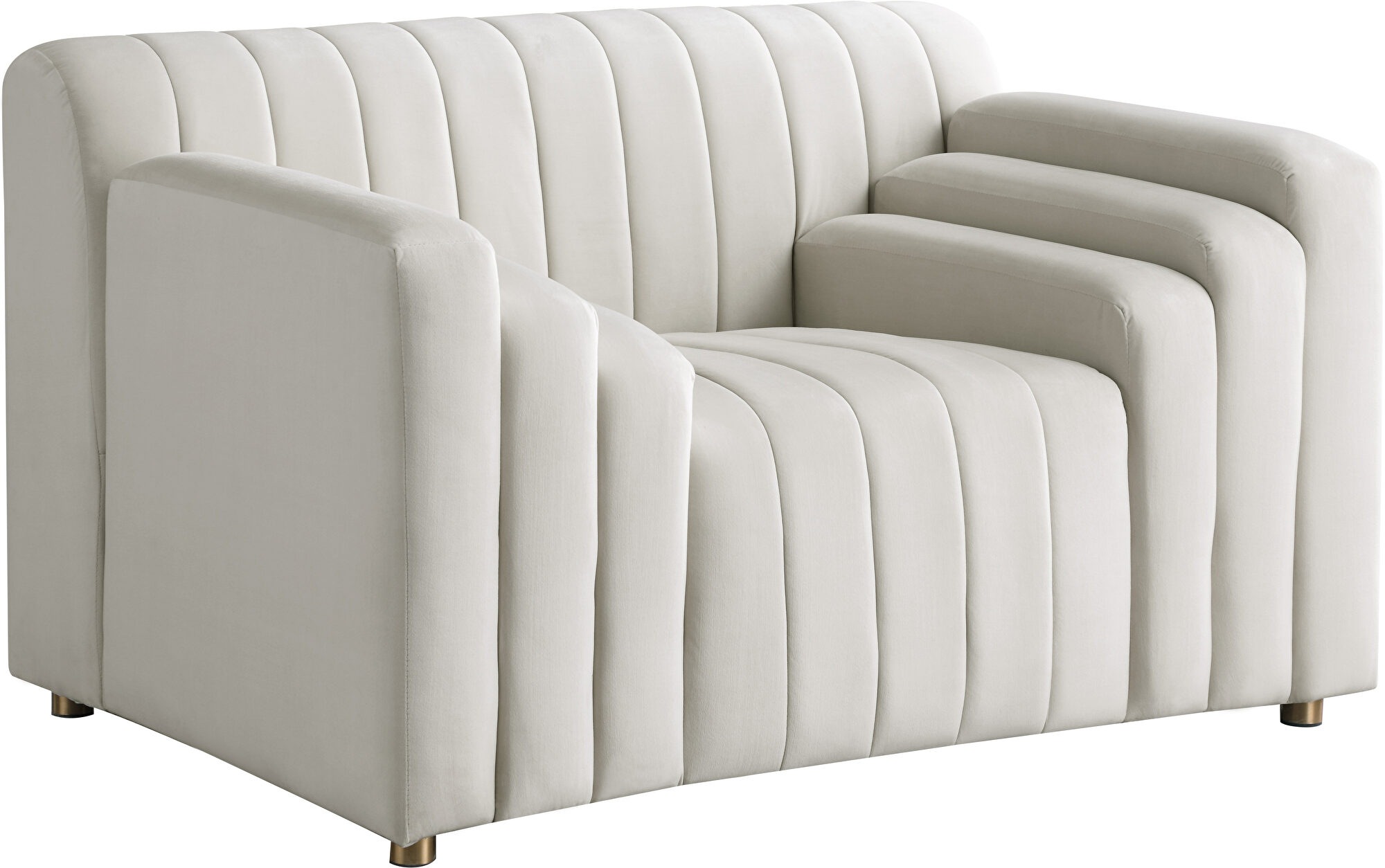 Beautifully designed with dramatic dropping level armrests, Naya chair in cream is truly a piece to remember. Features low profile, unique styling and quality craftsmanship. Matching pieces available. Few other colors available.Features:
