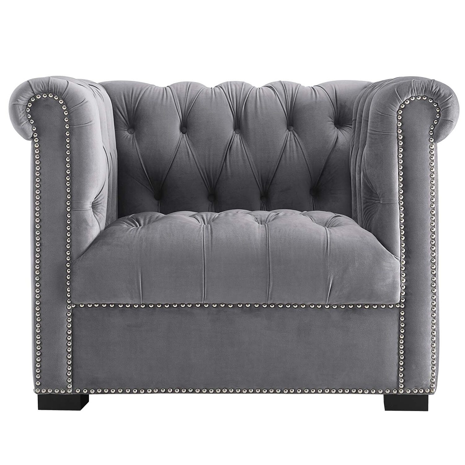 An inspired take on the ever-popular classic, Heritage Performance Velvet Armchair reflects the timeless silhouette of the traditional Chesterfield design with its rolled armrests and deep button tufting, while chic nailhead trim offers a luxurious update. An elegant addition to living and lounge spaces alike, Heritage’s stain-resistant performance velvet upholstery, broad profile, black birch wood legs, and dense foam padding grants a comfortable place to sit, relax, and entertain. Chair Weight Capacity: 331 lbs.Features: