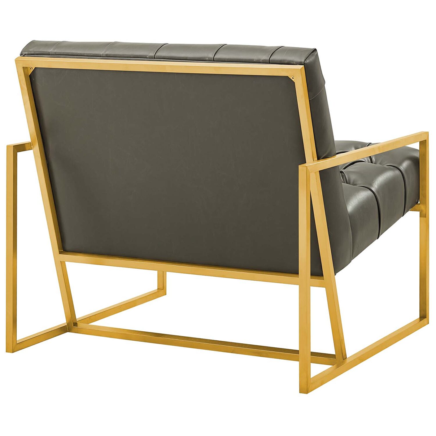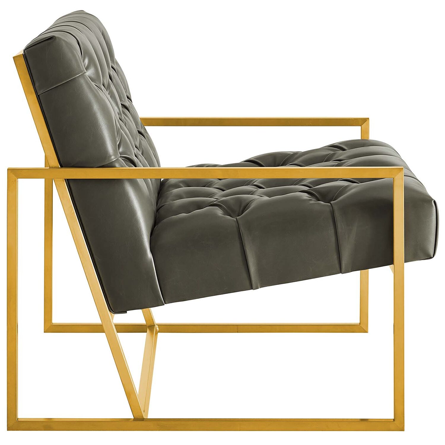 Bequest antique gold stainless steel faux leather accent chair in gray