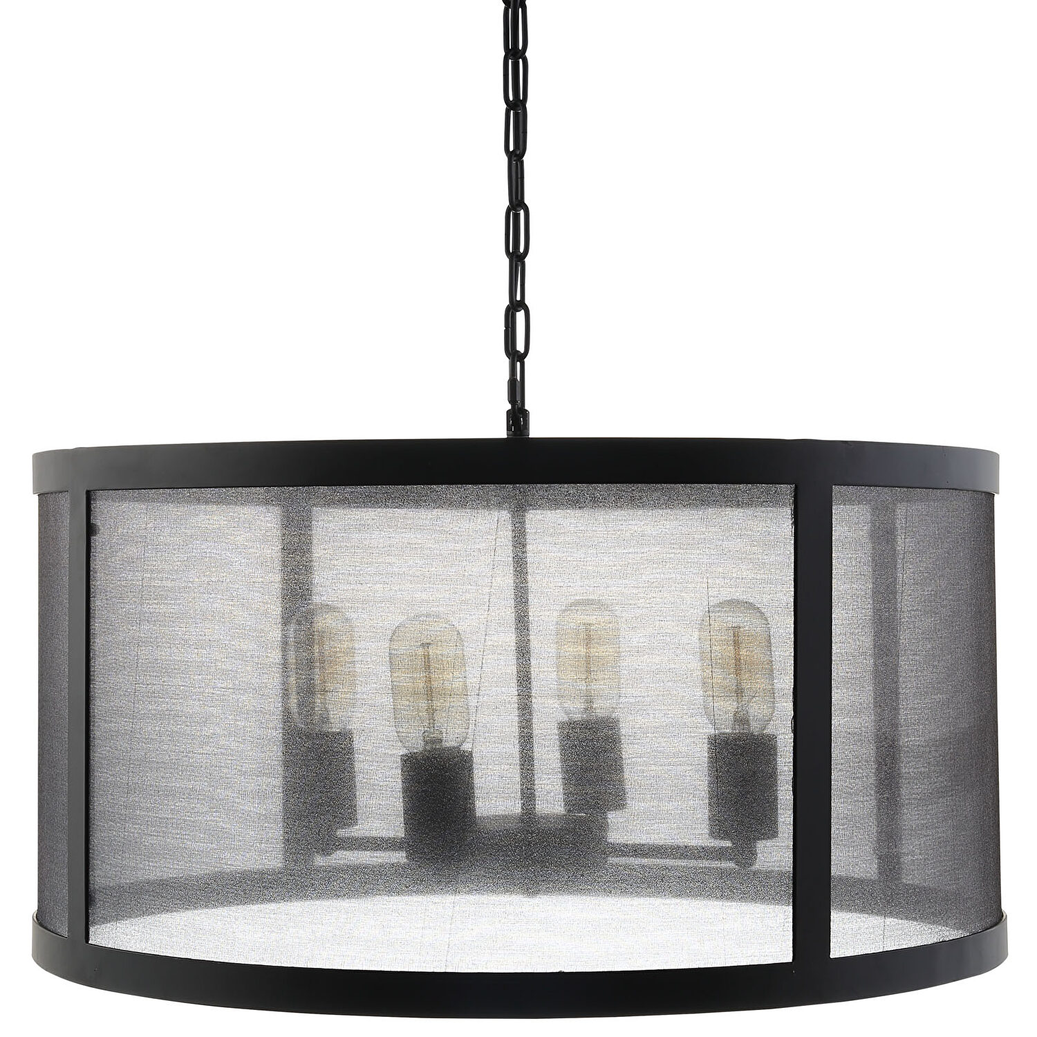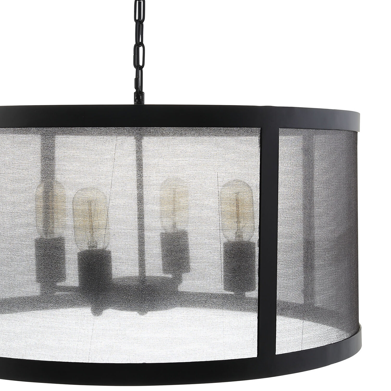 Peer valiantly forward with the Frost Chandelier. Generate the perfect ambiance with a frosted durable plastic cover supported by a steel trim and adjustable steel chain. Successfully pour forth the light of plenty with this piece that illustrates both traditional and modern design sensibilities. Frost fits four bulbs with endless possibilities for rustic, ranch, vintage modern, industrial modern, and other transitional decors.Features: