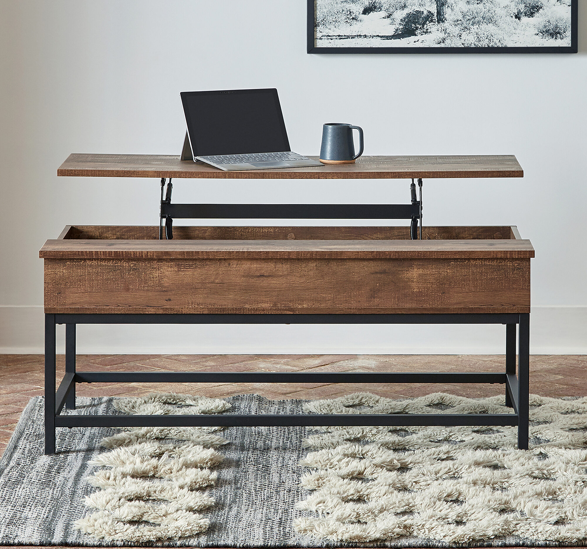 CS778 lift top coffee table rustic modern design with metal accents