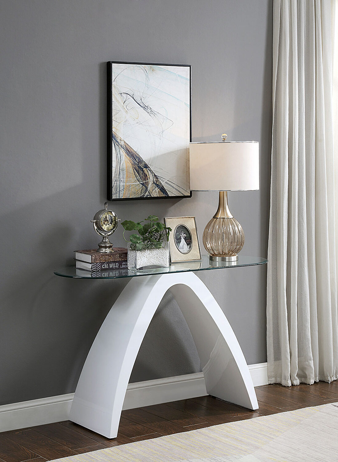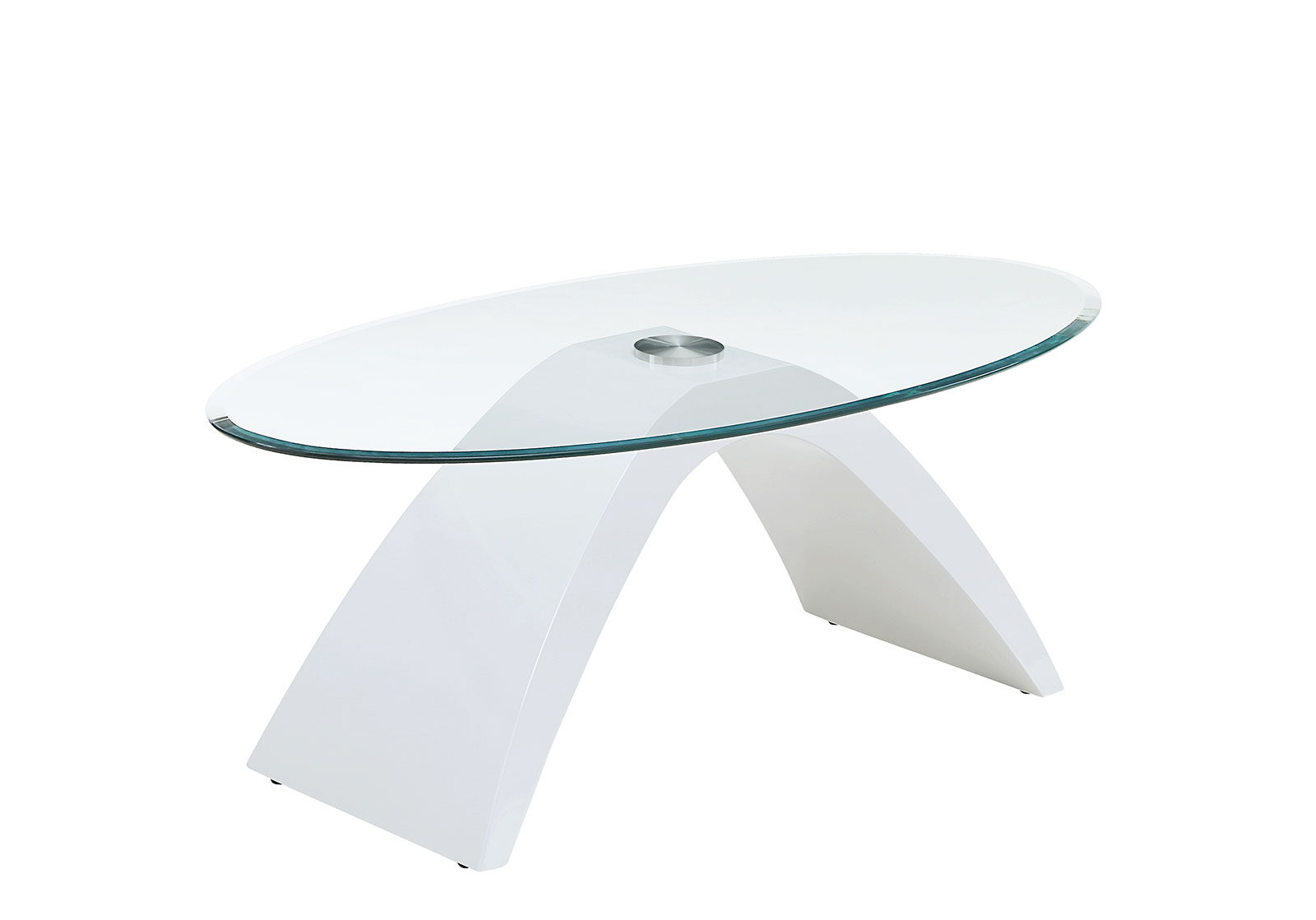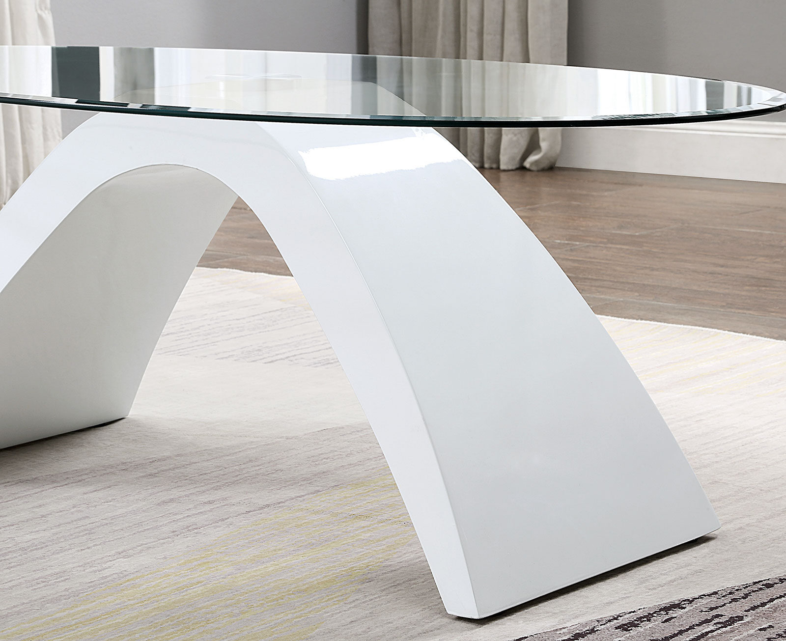 It's a design that appeals to the imagination, an ambitious departure from typical table styles that haven't advanced enough over the years to keep up with evolving tastes. Each has a high-gloss wood base and elliptical tempered glass top. Individually or as a set they establish a mind-bending look worthy of the daring eye.Features: