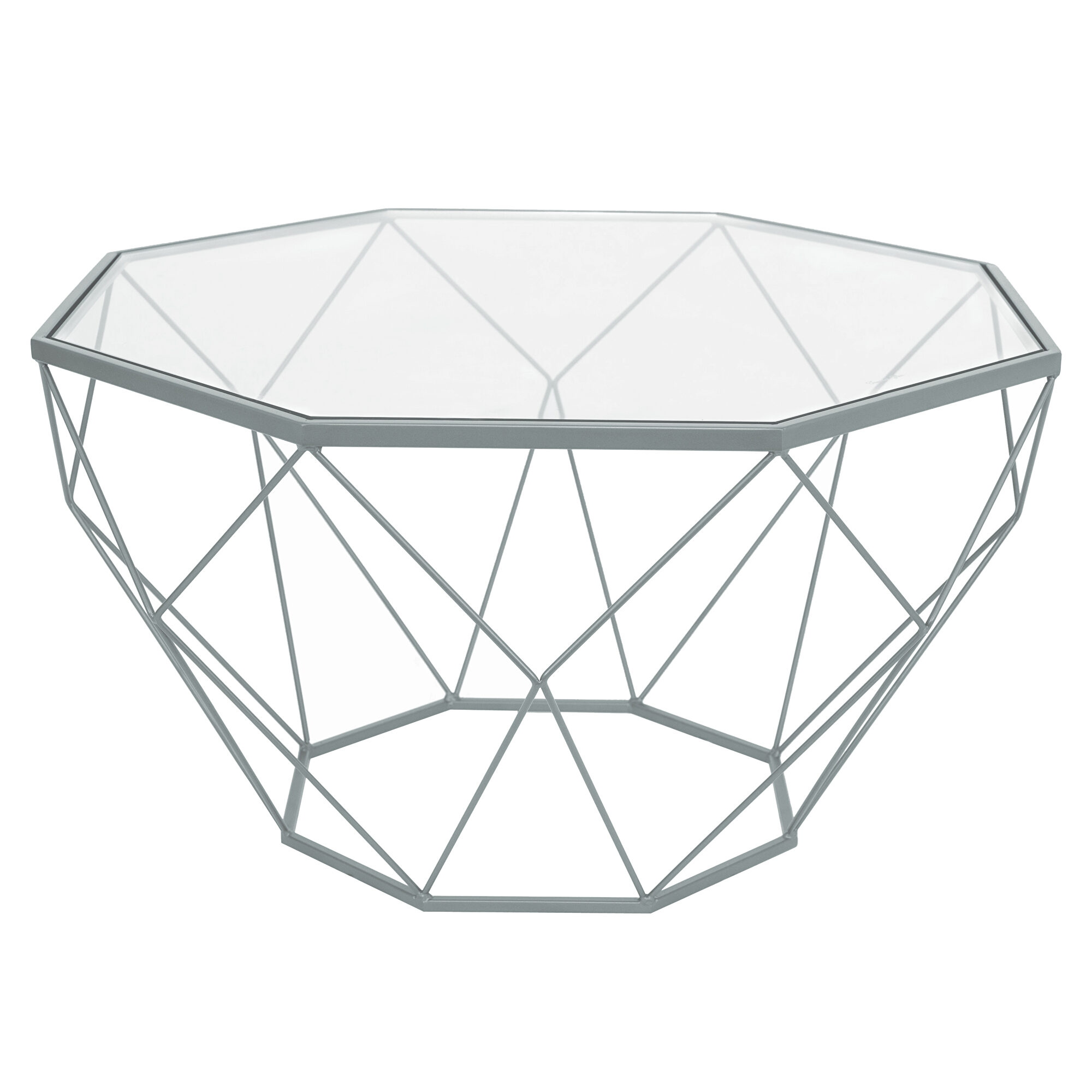 SKU: MD31GRMalibu tempered glass top and geometric gray metal base coffee table