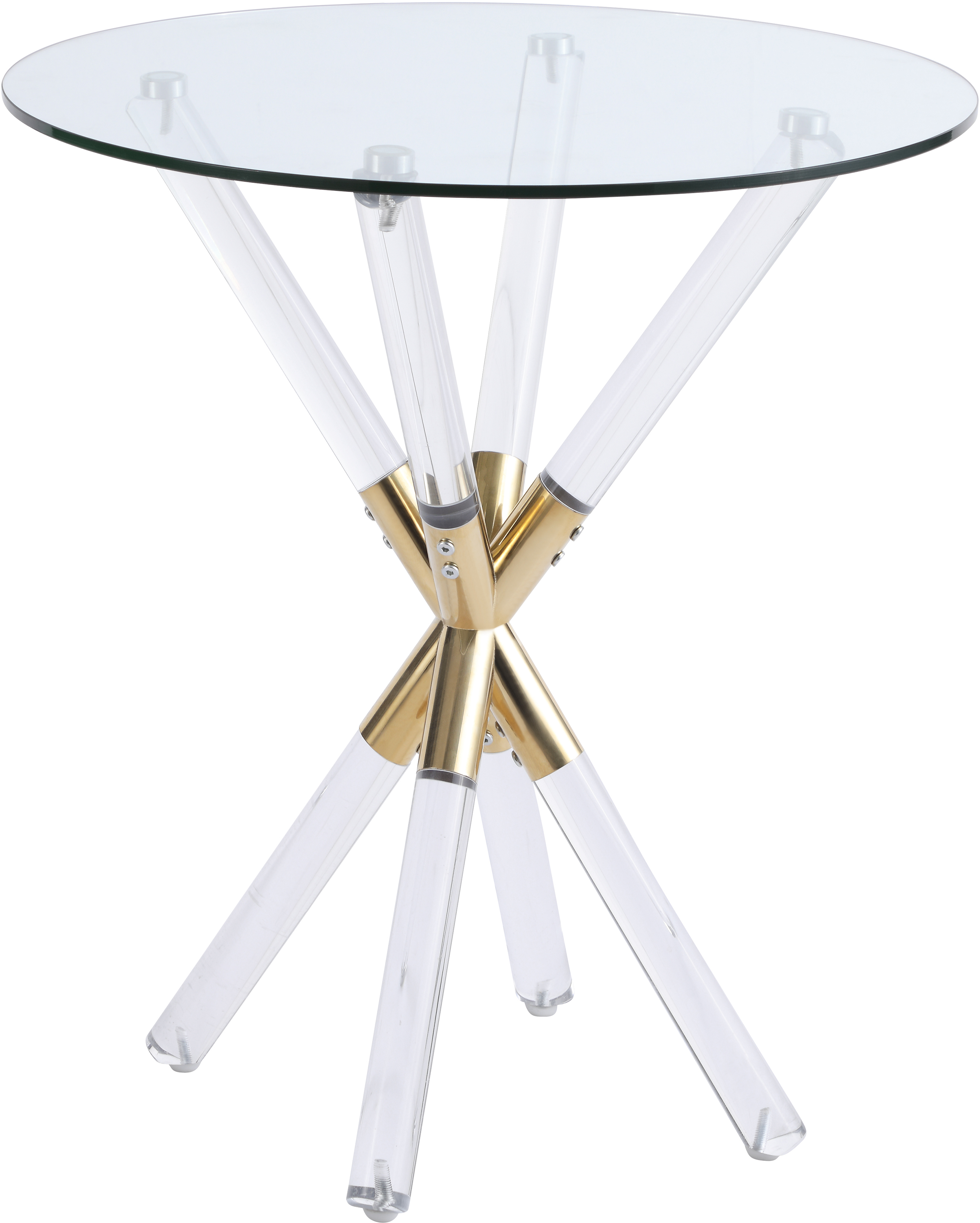 Bring modern pizzazz to your living room with this Mercury Acrylic Gold Coffee Table. The base features a pedestal design with acrylic gold legs for a touch of contemporary fun. The tempered glass top offers plenty of room for holding items like framed pictures or magazines. The top is clear, so you can easily see the beauty of the metallic legs showing through, giving your living room or den a little something extra.Features: