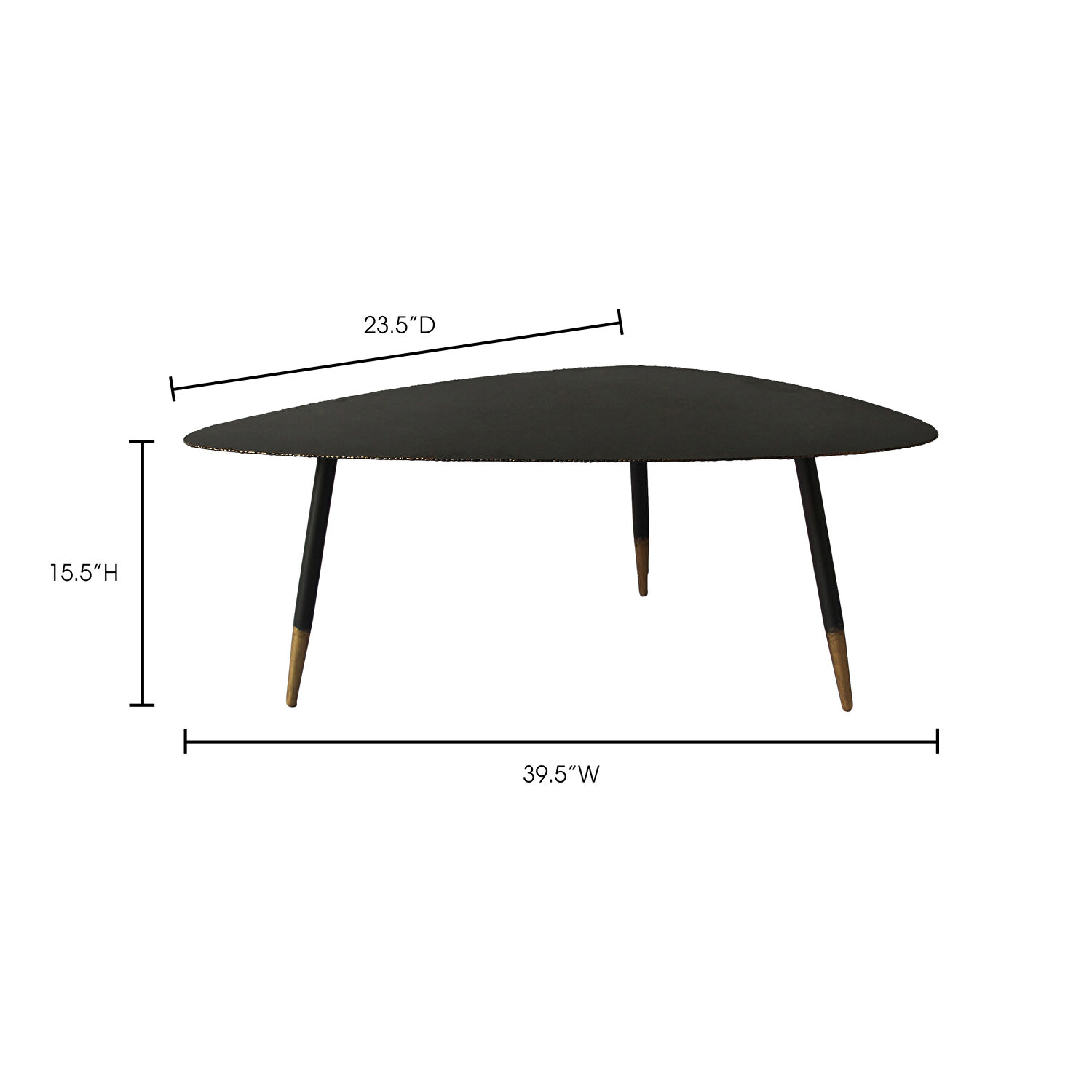 The Bruno Coffee Table offers industrial style with a streamlined design. Its gold detailing makes it elevated yet simple. The Bruno Coffee Table offers industrial style with a minimalist design. The all-metal construction also features gold tipped legs and edges.Solid metal construction for a cool, industrial table.Wipe up spills immediately with a clean dry cloth. Clean regularly with a soft cloth dampened with a diluted solution of mild soap and warm water. Dry with a soft cloth. If the surface becomes chipped or scratched, rust or corrosion may occur due to the area being exposed to air. If rusting begins to occur, clean the affected area with a wire brush or steel wool. Recoat the repaired area with an appropriate finish for metal surfaces to stop deterioration. Made in China. Industrial. Color: Black. We offer 1 Year warranty. Dimension: 39W 23D 15H. Product Weight: 10.20 lbs. Material: Metal. We understand how important your home is and how decorating your kitchen, dining room or bedrooms with classy, contemporary furnishings can help make it a place that reflects who you are. We believe in the power modern furniture has in creating not just a home but YOUR home. We believe in feeling good about our home's environment, and we think you do too.Features: