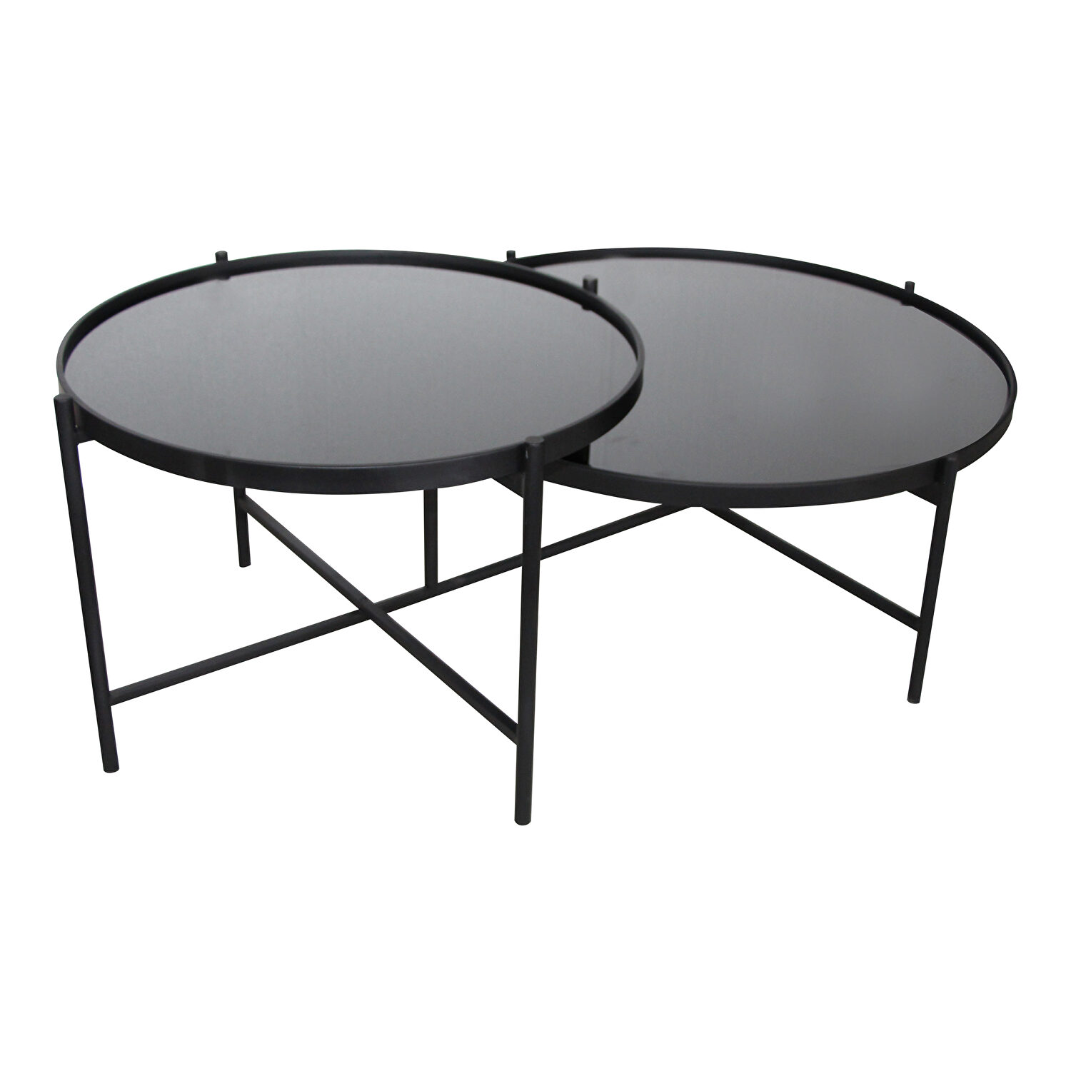 A reflection of industrial style and the dark night sky, this two-tiered coffee table will transform your living space with its round, finely formed appeal. With a top-to-bottom iron frame and mirrored tabletops, add a bit of dark, industrious drama to your living room decor with Eclipse and have the feel-good vibes wane and wax throughout your social setting. A reflection of industrial style and the dark night sky, this two-tiered coffee table will transform your living space with its round, finely formed appeal. With a top-to-bottom iron frame and mirrored tabletops, add a bit of dark, industrious drama to your living room decor with Eclipse and have the feel-good vibes wane and wax throughout your social setting. We offer 1 Year limited commercial warranty (covered for any manufacturer's defect). Made in China.Features:
