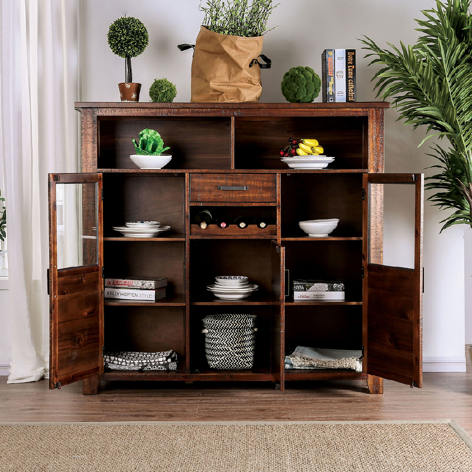 Elevate your dining experience with the Wichita Dining Set – the perfect combination of functionality and rustic charm for the practical and style-conscious homeowner. Crafted for those who appreciate having everything within arm's reach, this set ensures that your dinner gatherings are both welcoming and well-organized.The Wichita Dining Set is designed with the ultimate comfort in mind, featuring padded leatherette seats that invite guests to relax and linger over their meals. The solid wood and wood veneer construction exude durability and warmth, while the intricate wood grain details add a touch of natural beauty to your dining area.