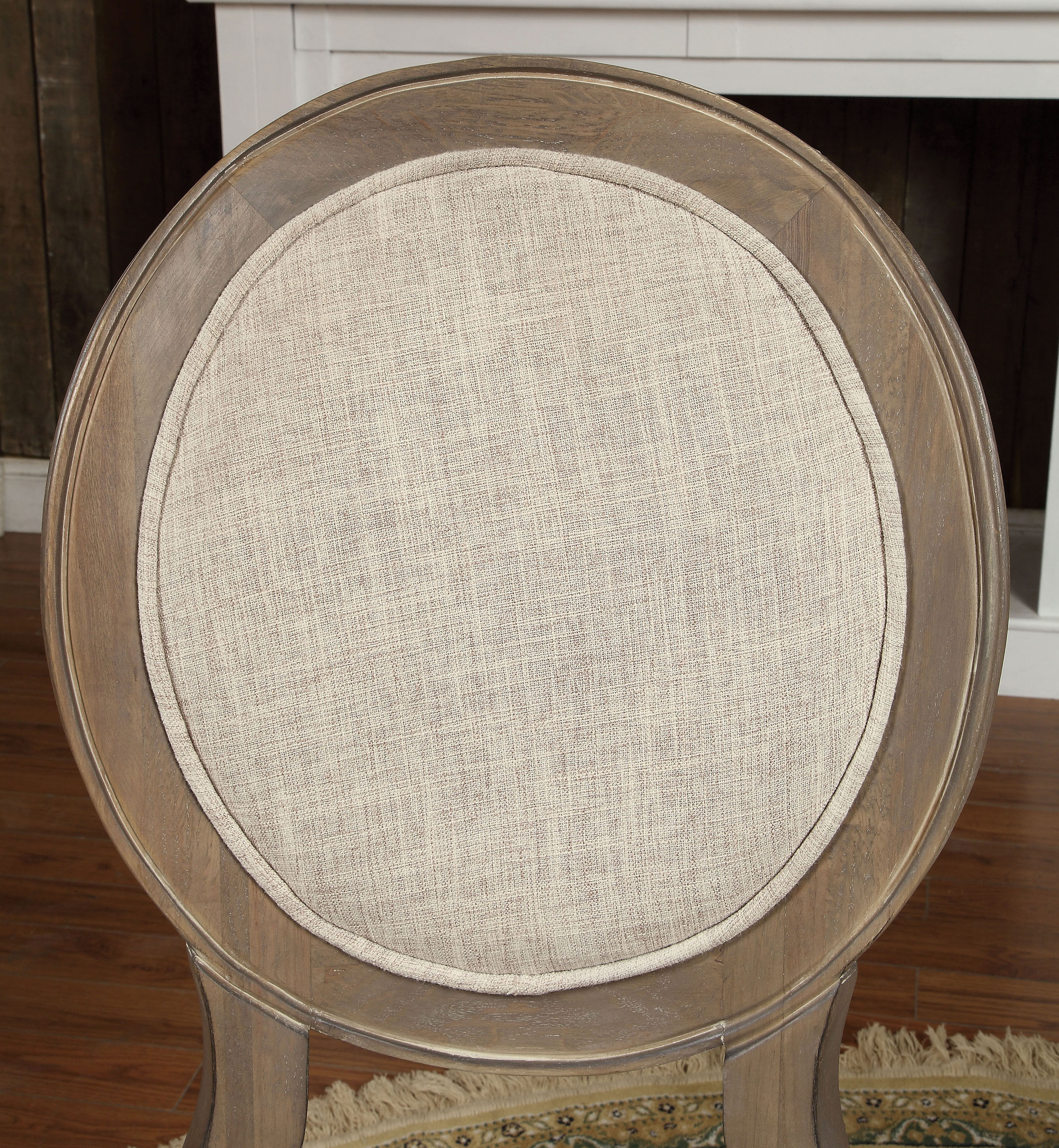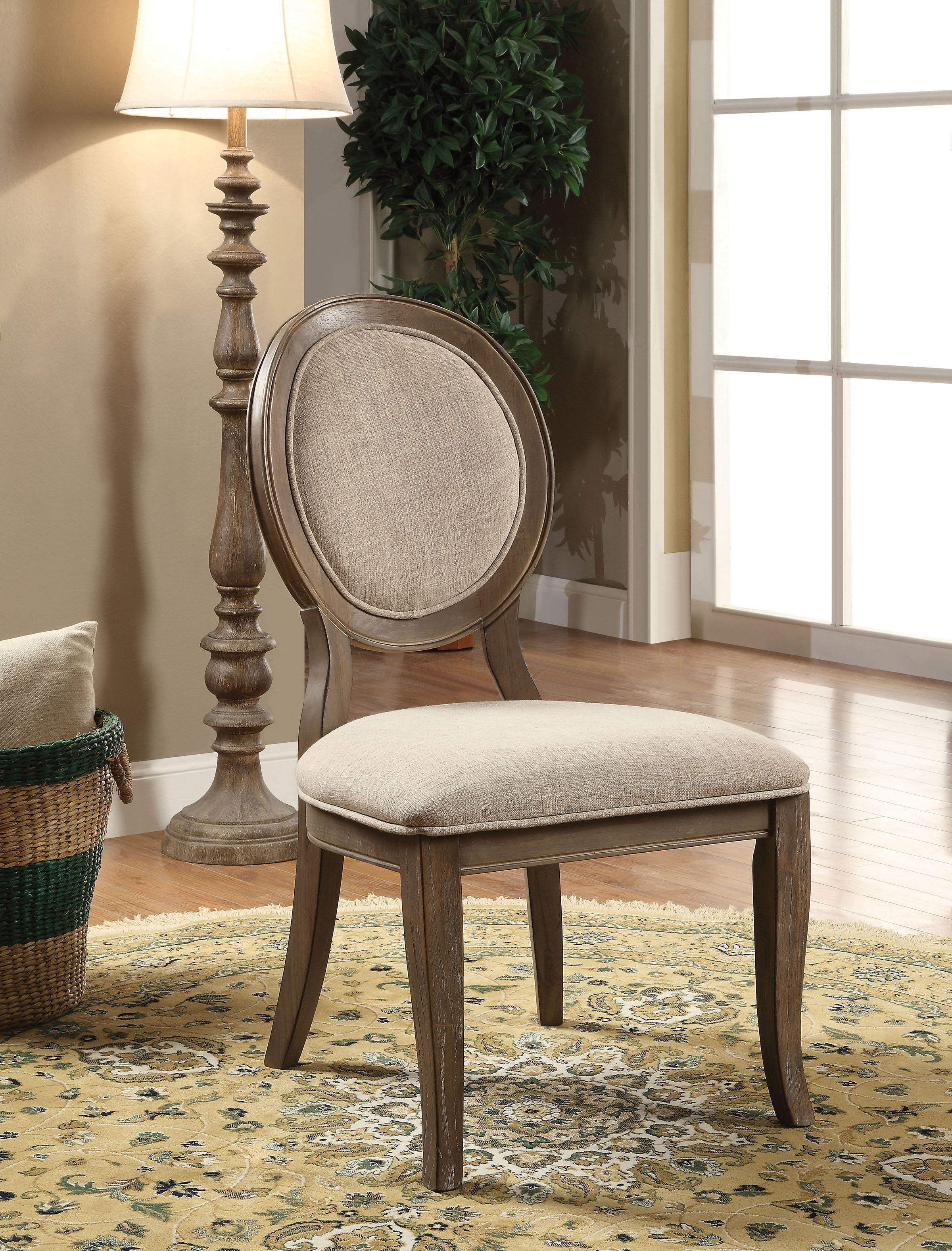 Beautiful and sophisticated, this dining collection brings the perfect amount of elegance to offer refined style without being overly extravagant. The round-backed side chairs are finished in rustic dark oak and feature padded linen cushions in ivory.Features: