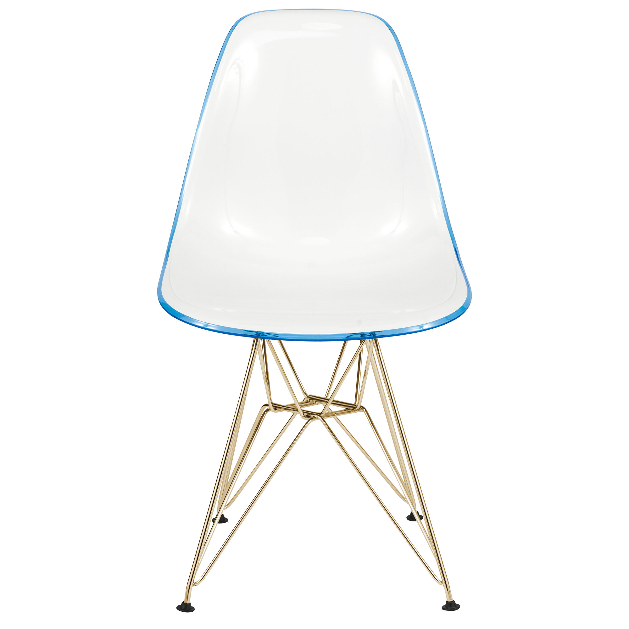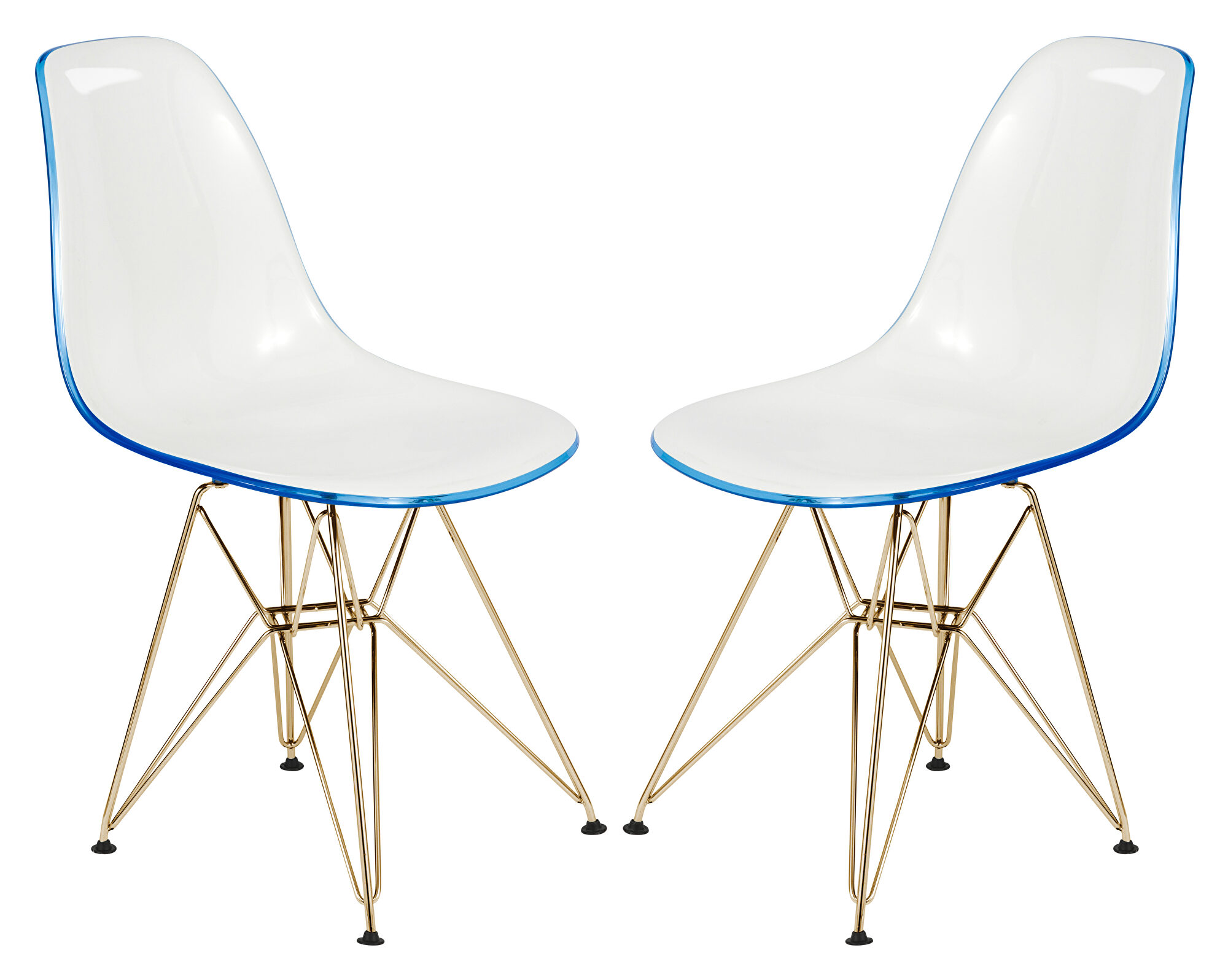 The Cresco Molded 2-Tone-White Blue Eiffel Side Chair relieves pressure and instills confidence with its visual and ergonomic appeal. Enjoy its colorful composition, lightweight design and protective floor pads. This simple seat boasts an elegant wire base for stability, while its sleek core cradles the back for contemporary comfort. Weight Capacity: 275 lbsFeatures: