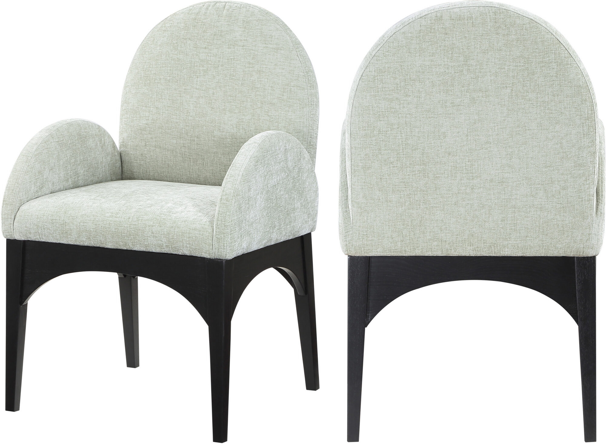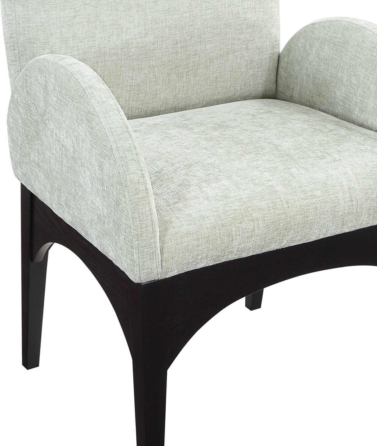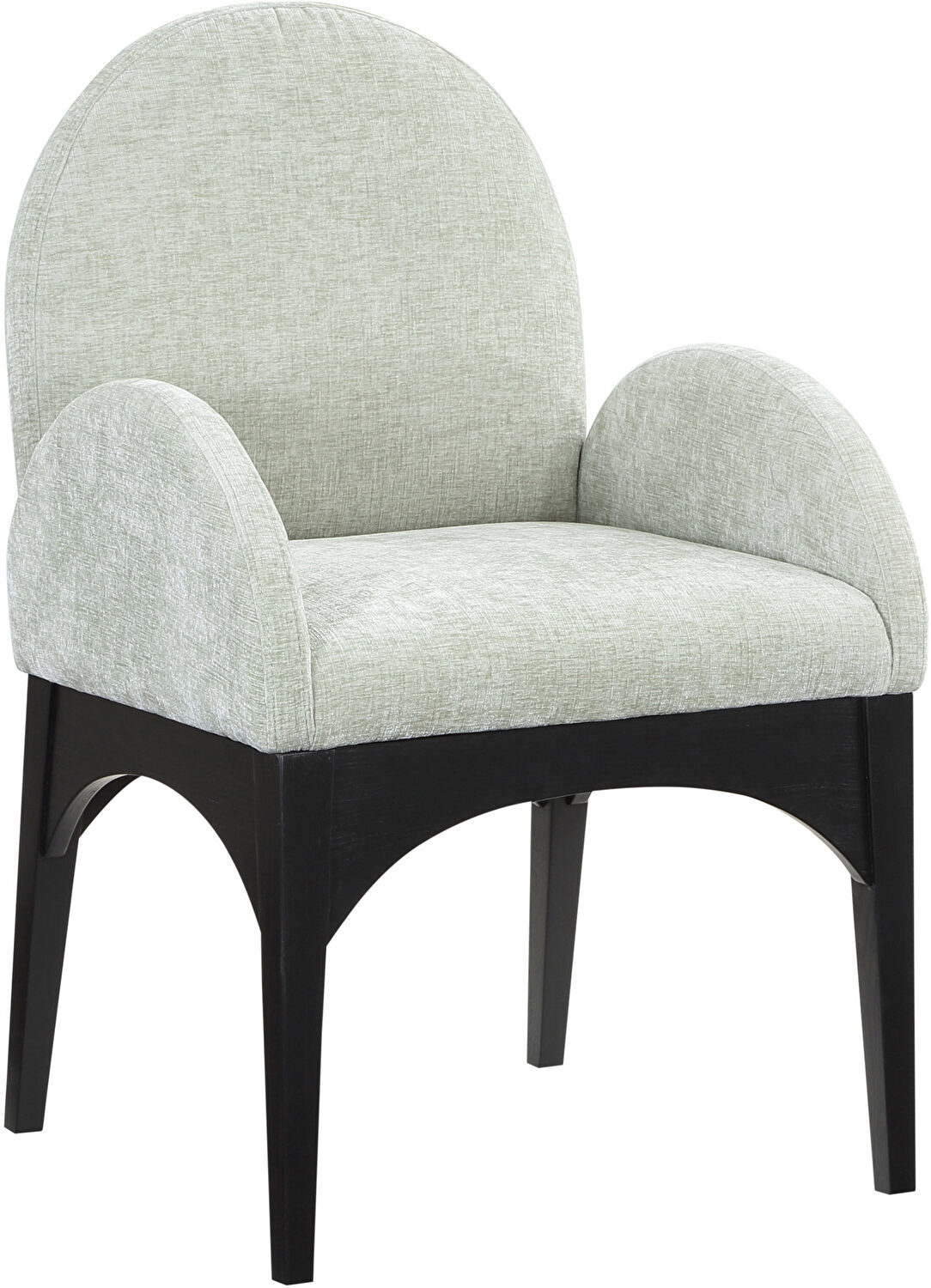 Indulge in the luxurious embrace of the Waldorf Chenille Fabric Dining Arm Chair, a masterpiece of comfort and sophistication. Constructed from high-quality solid ash wood, this chair is built to last, offering both stability and endurance. The legs, coated in an elegant black finish, add a modern yet timeless appeal, effortlessly complementing any dining room decor. As you settle into the plush, soft mint chenille fabric that adorns the generously cushioned seat and backrest, you'll find it perfect for those extended dinner parties and engaging conversations. The chair's art deco-inspired design exudes a charm that's both classic and contemporary. Make the Waldorf Chenille Fabric Dining Arm Chair the cornerstone of your dining space for an unparalleled blend of style and comfort.Features: