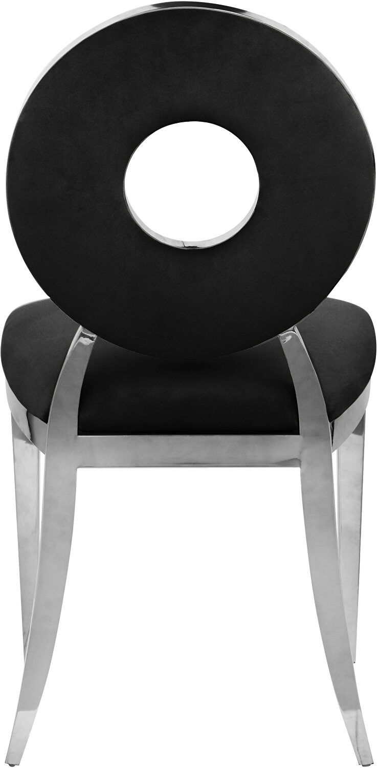 This stylish Carousel dining chair comes in few colors and features unique back and sleek glam design. Shown here in black.Features: