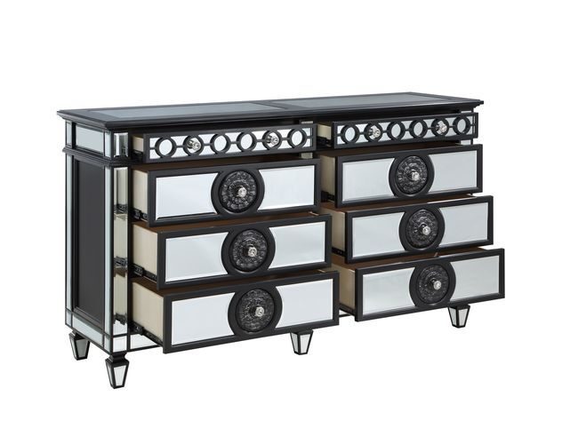 The Varian II Dresser provides a commanding presence in any room. Crafted with a transitional look that is an ideal addition to any bedroom, raised geometric patterns and mirrored finish. This fashionable set will fuse with the surrounding decor, transforming a room from ordinary into something interesting and sophisticated.Features: