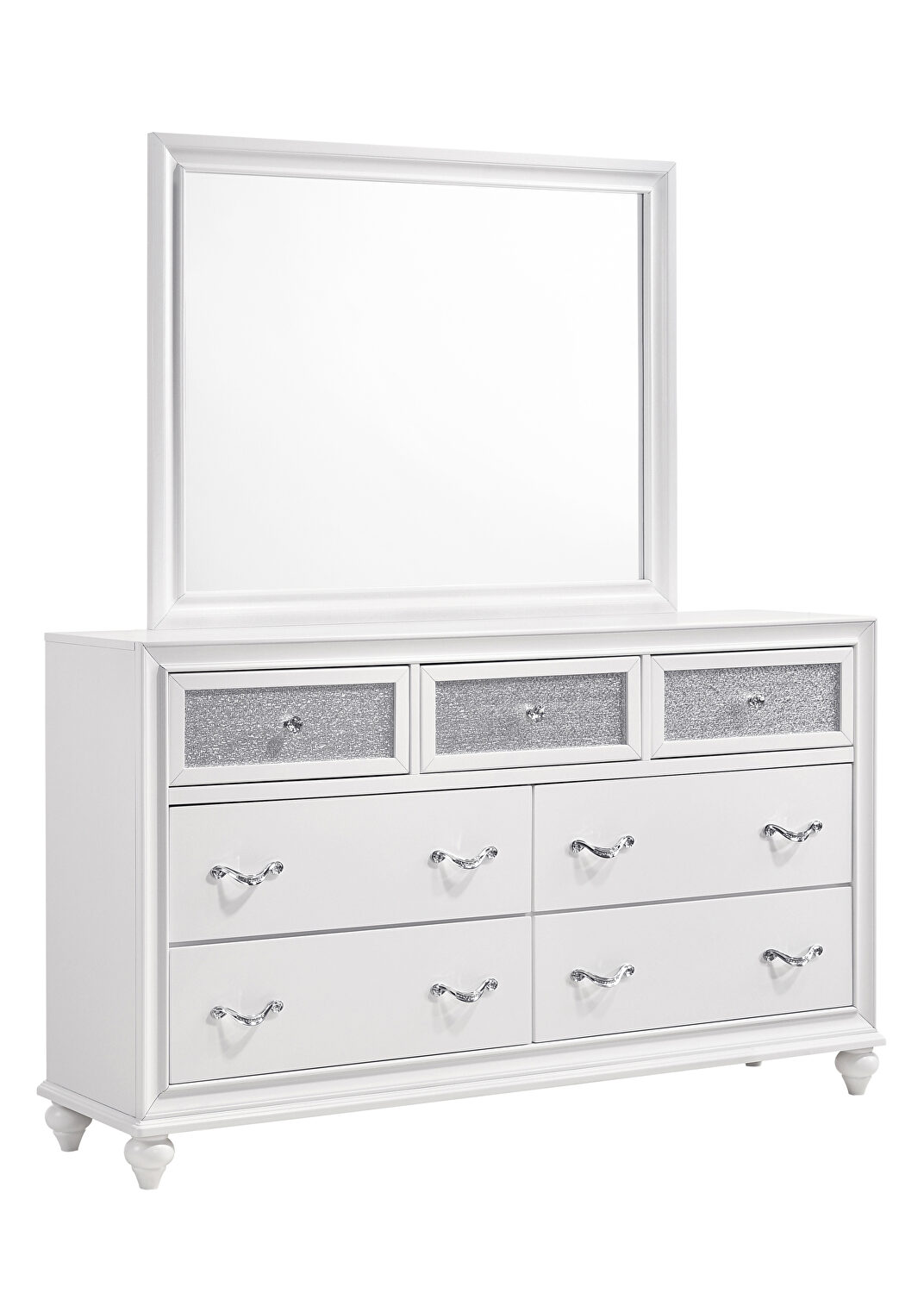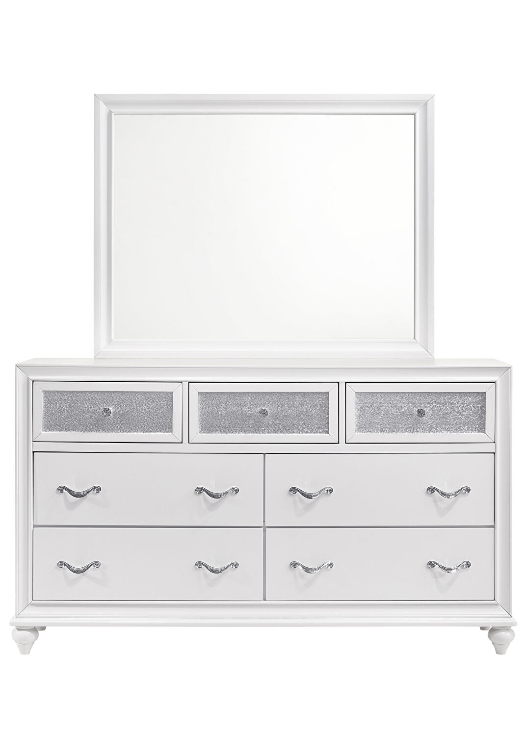 Opulence and elegance rule the day in this exciting bedroom dresser. Glittering, metallic, acrylic drawer fronts and faceted crystal hardware add opulence.Features: