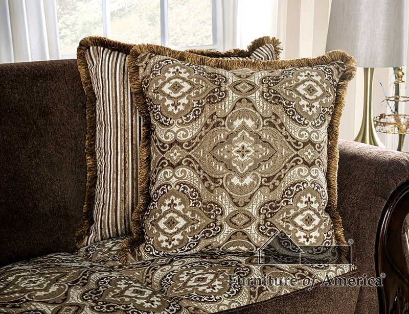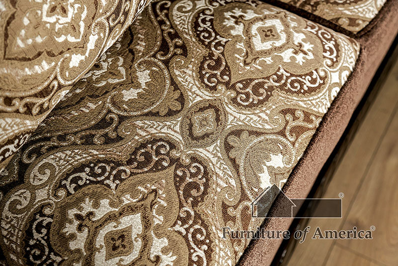 discountJoselyn ornately carved wood details brown chenille fabric sofa