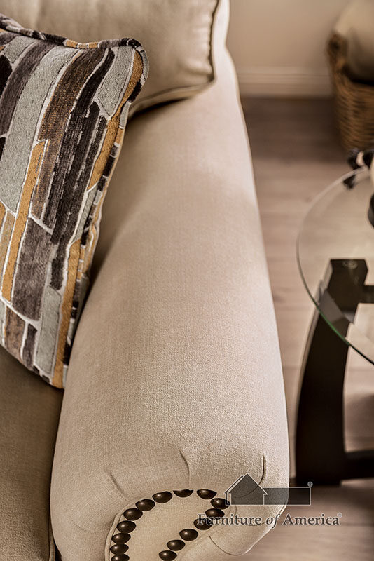 discountKailyn sand/ brown chenille fabric sofa with individual nailhead trim