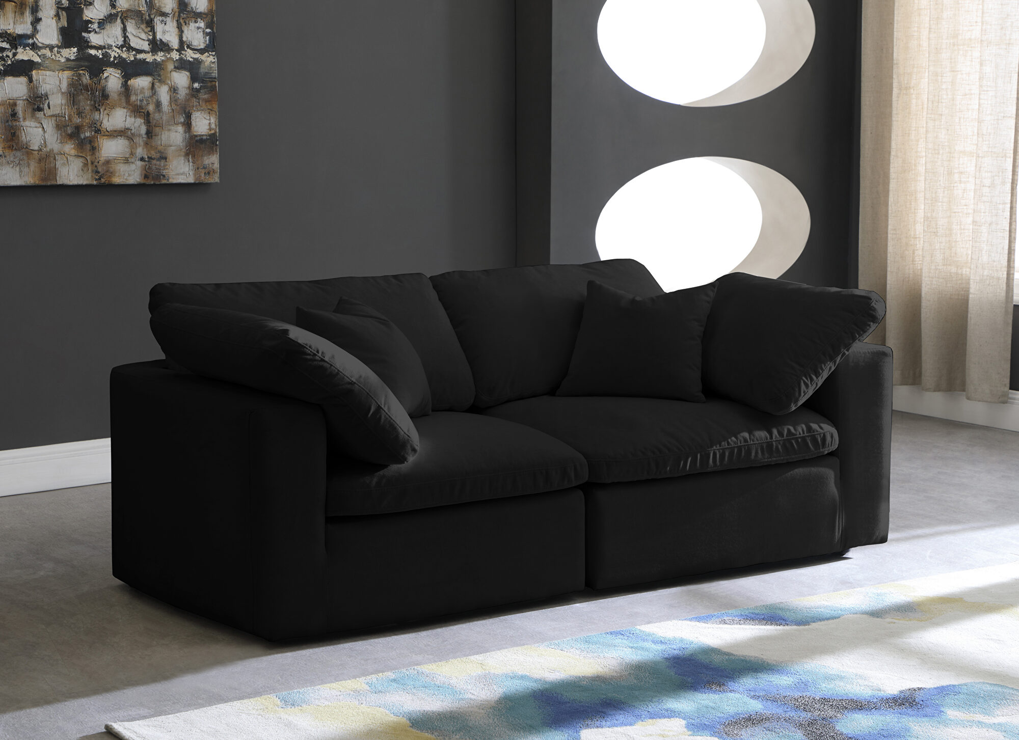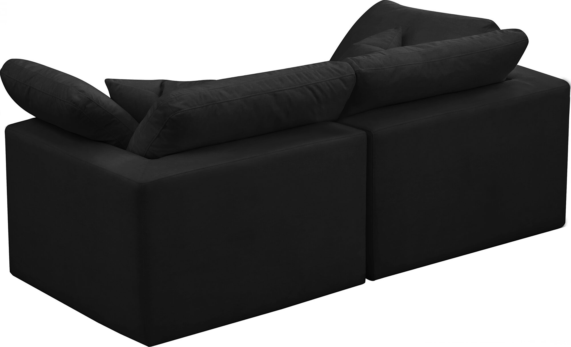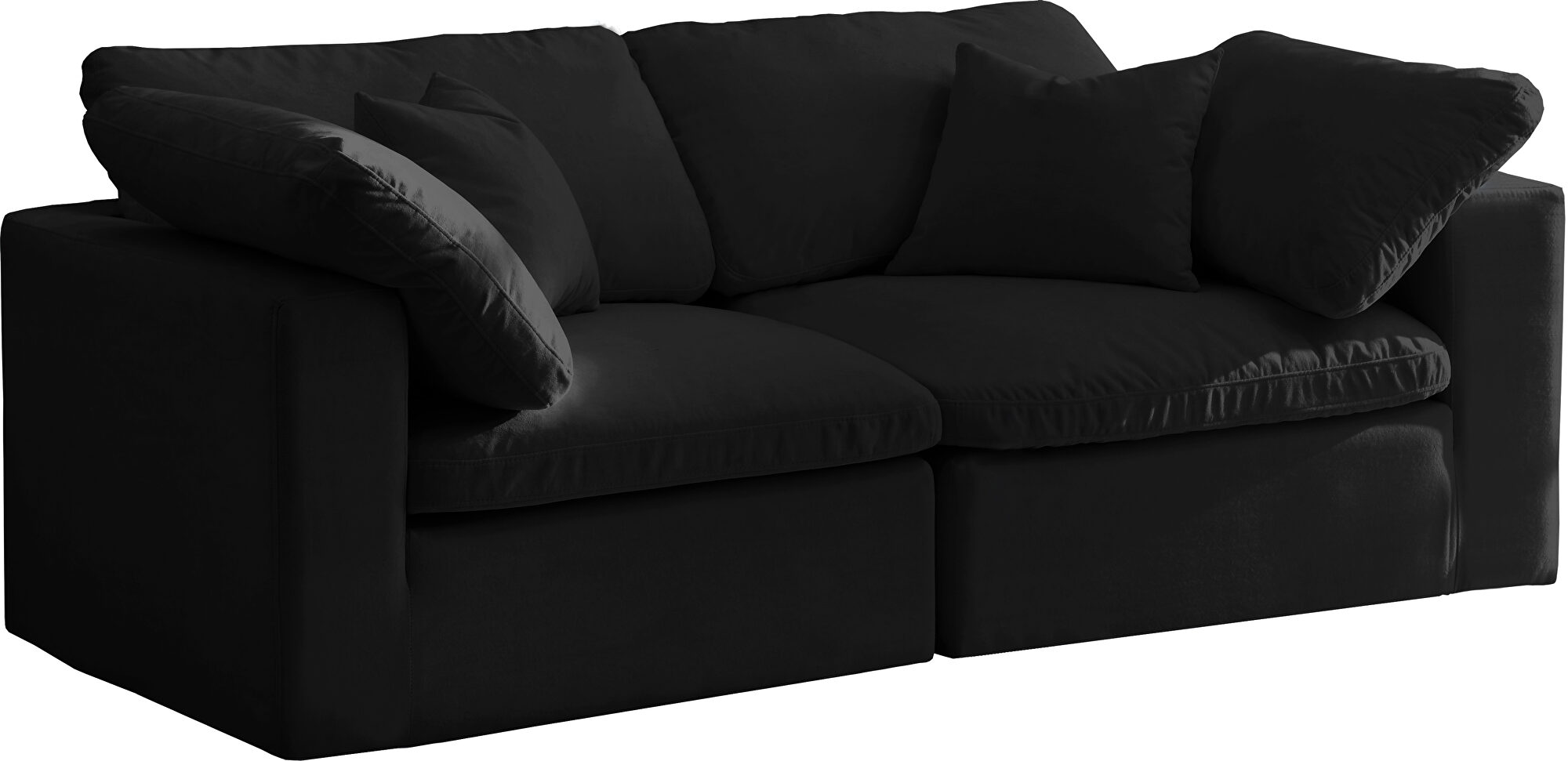 Indulge in the luxury and comfort of our Velvet Black Fabric Modular Cozy 2-Piece Sofa, a chic and versatile addition to any modern living space. This elegantly crafted set features two corner pieces that combine effortlessly to create a sleek profile and a tailored look. With the option to explore endless configurations, the set functions beautifully as a standalone sofa or as part of a larger modular sectional to fit your unique space and design preferences.Each component of this modular set is available for individual purchase, allowing you to customize your seating arrangement to your heart's content. Choose from three distinct pieces: a plush ottoman, a comfortable wedge corner, and a stylish armless chair. All elements come equipped with discrete latching mechanisms, making assembly and rearrangement a breeze while ensuring a secure fit.