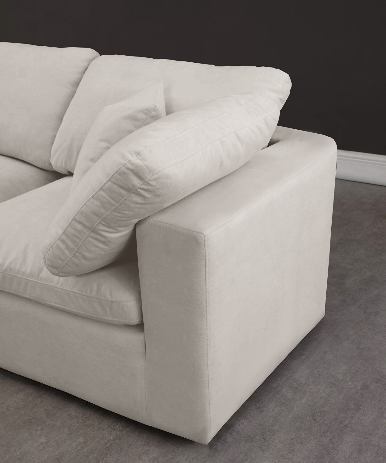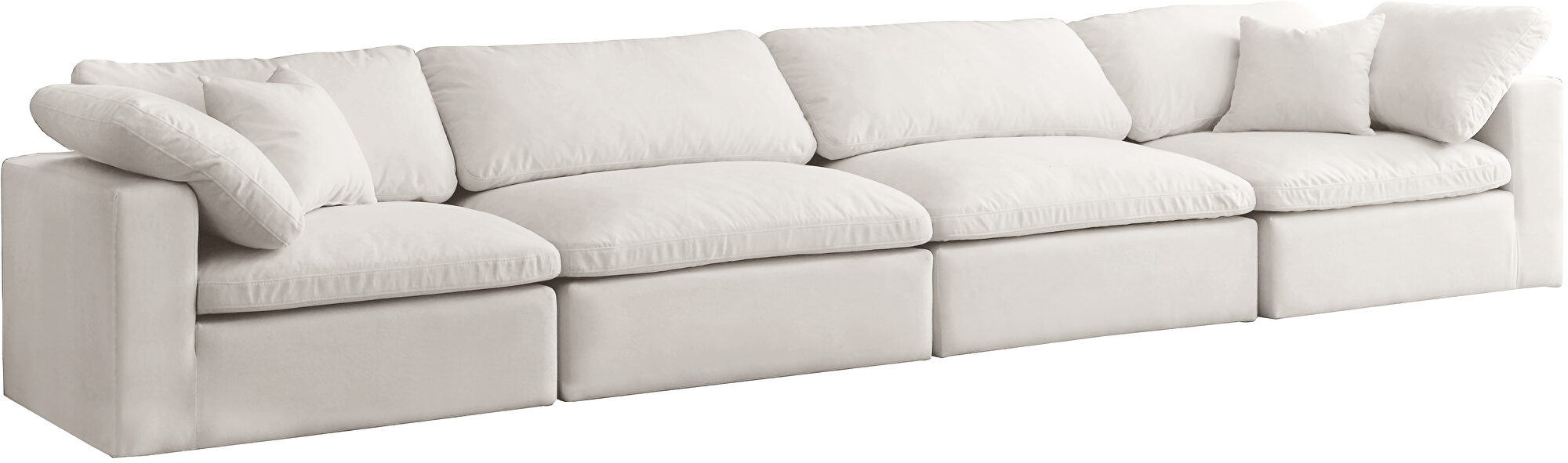 Immerse yourself in the luxurious embrace of our Velvet Cream Modular Sofa Set, a versatile collection designed to elevate your living space with both style and comfort. This four-piece set includes two plush corner pieces and two sleek armless chairs, crafted to offer endless possibilities for arrangement. Whether you're in the mood for an intimate sofa setup or a sprawling sectional to entertain guests, the choice is yours.Our modular sofa set is comprised of three distinct pieces: a sumptuous ottoman, a cozy corner wedge, and a chic armless chair. Available for individual purchase, these components allow you to create the perfect seating solution tailored to your space and preferences. The intuitive design includes latches for secure attachment, so you can effortlessly switch up your layout whenever inspiration strikes.