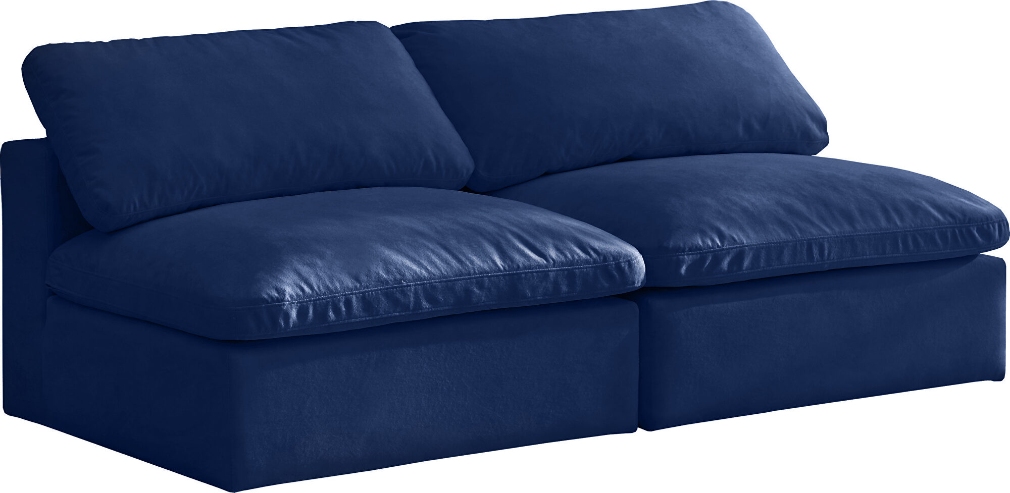 Experience the epitome of comfort and versatility with our luxurious Navy Velvet Cozy Sofa Set. This modular 2-piece delight offers endless customization to suit your unique living space. Crafted with the finest velvet fabric, the set includes three distinct pieces: an ottoman, a wedge-shaped corner, and an armless chair. Each piece is sold separately, allowing you the freedom to design a seating arrangement that perfectly aligns with your interior decor and spatial requirements.Whether you're looking to create a simple couch setup or an expansive sectional, the Cozy Sofa Set makes it possible. Effortlessly connect each component using the sturdy latches provided, ensuring a seamless and secure assembly. The overstuffed cushions are filled with soft fibers, delivering unparalleled comfort that invites you to relax and unwind.