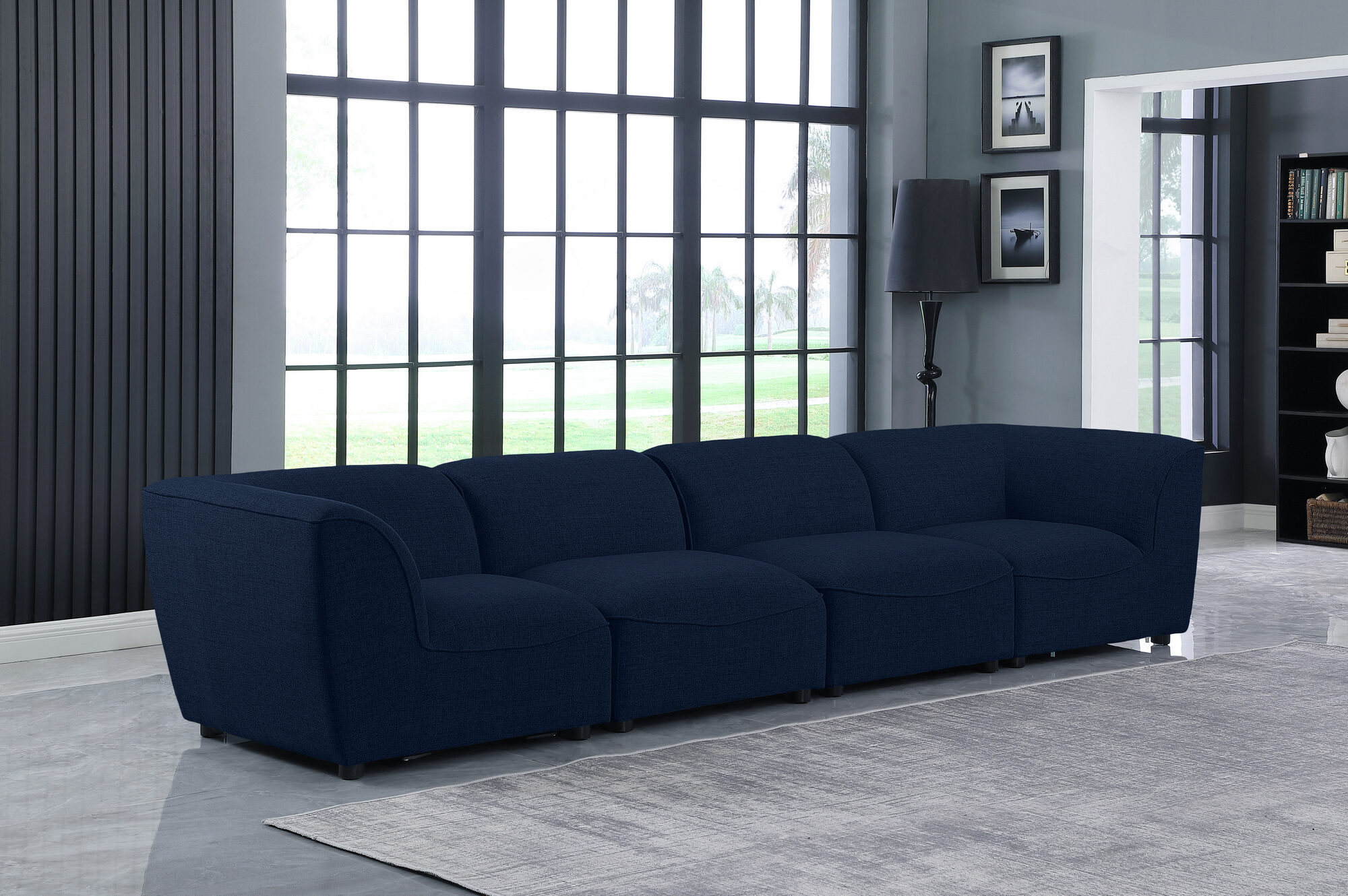 discountMiramar modular style navy blue linen fabric 4pcs sofa