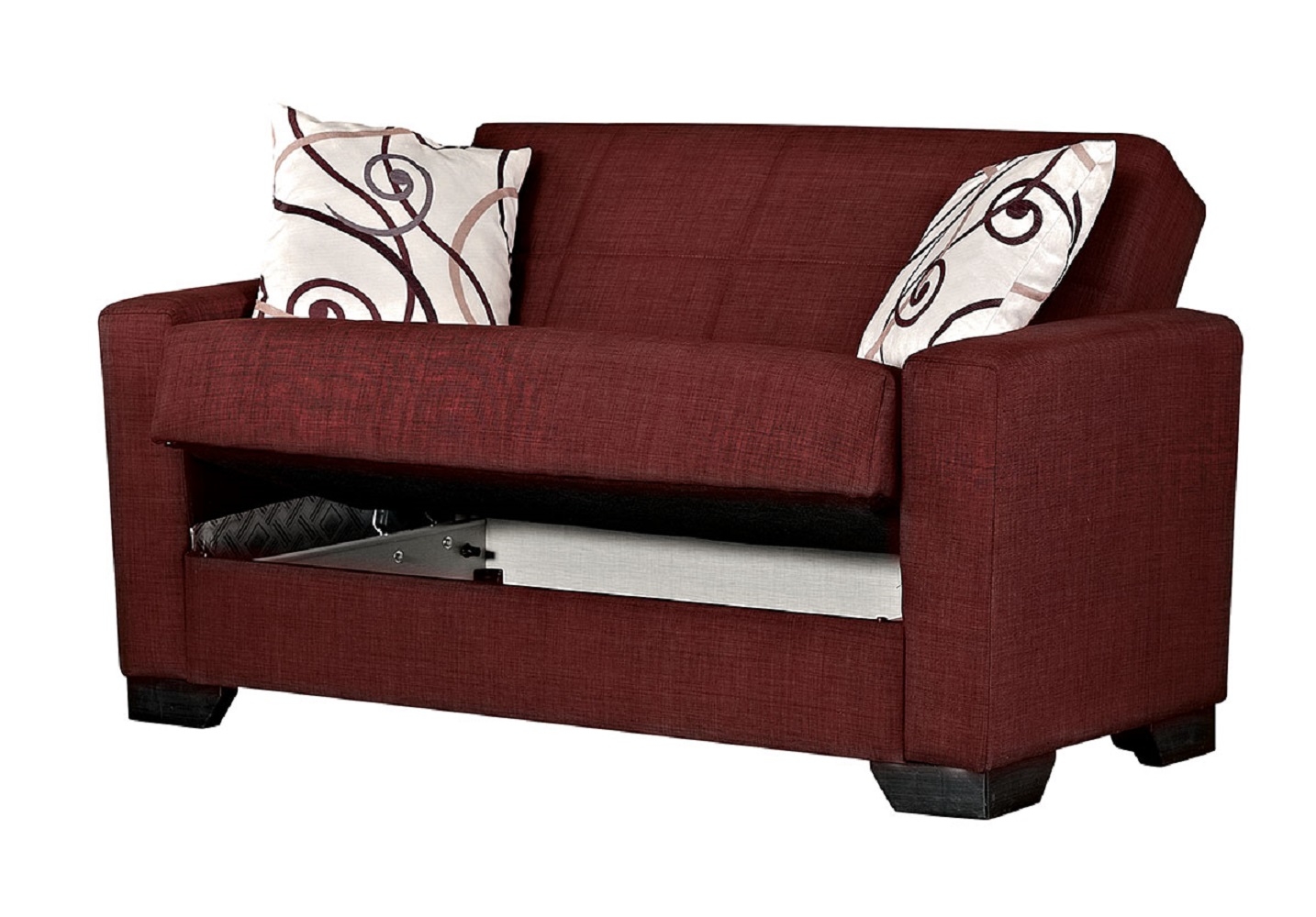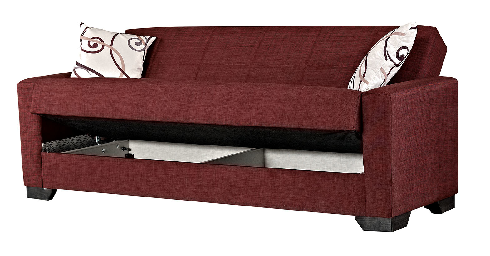 Vermont burgundy fabric sofa bed w/ storage