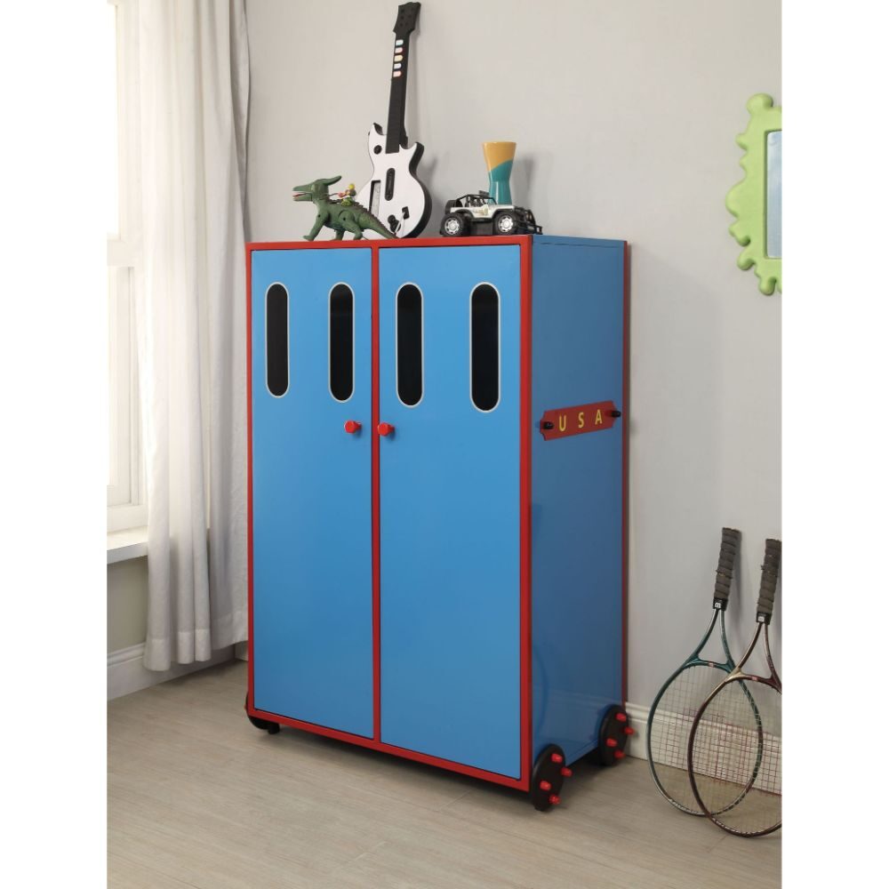 Tobi blue/red & black train twin bed