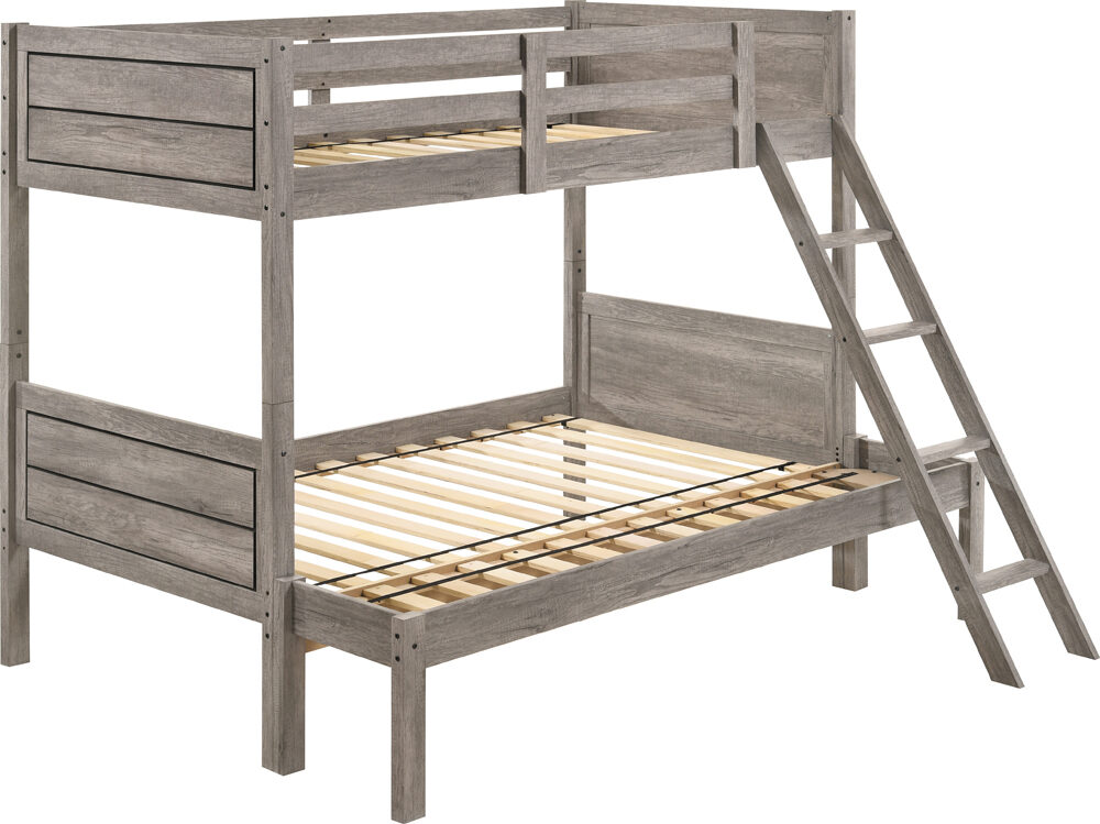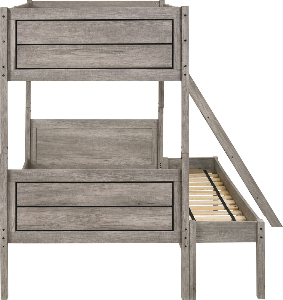 Ryder weathered taupe finish transitional twin/full bunk bed