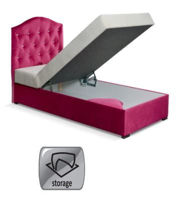 Mattress is included with this twin bed. Headboard has tufted design. Mattress can be easily lifted for storage compartment under the bed - check extra pictures. Mattress has adjustable head portion as well. Pink - twin size only, brown/black - both twin and full.Model: Julia Twin Black