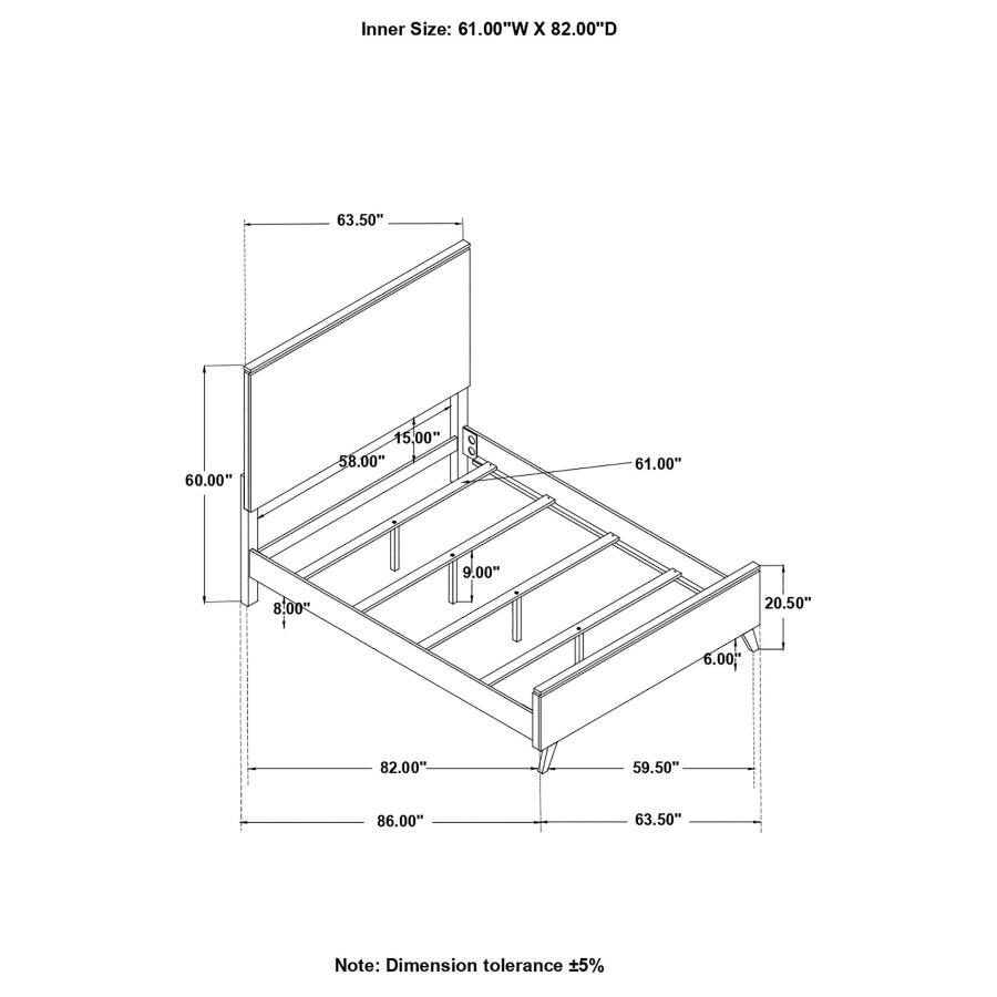 Infuse your bedroom with the soothing, earthy energy of beautiful wood with this modern bed. A soft gray finish lends contemporary flair and highlights the gorgeous grain details of oak veneer and asian hardwood construction. The bed boasts a tall, square headboard, delivering impressive support and understated style in a master or guest suite. A low profile footboard reinforces its modern silhouette, while flared legs are a perfect hint of character. This bed does require a foundation for use.Features: