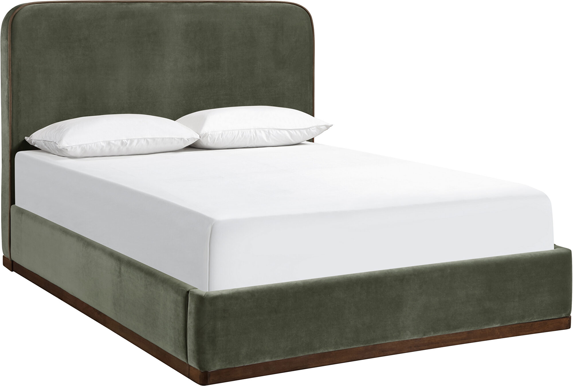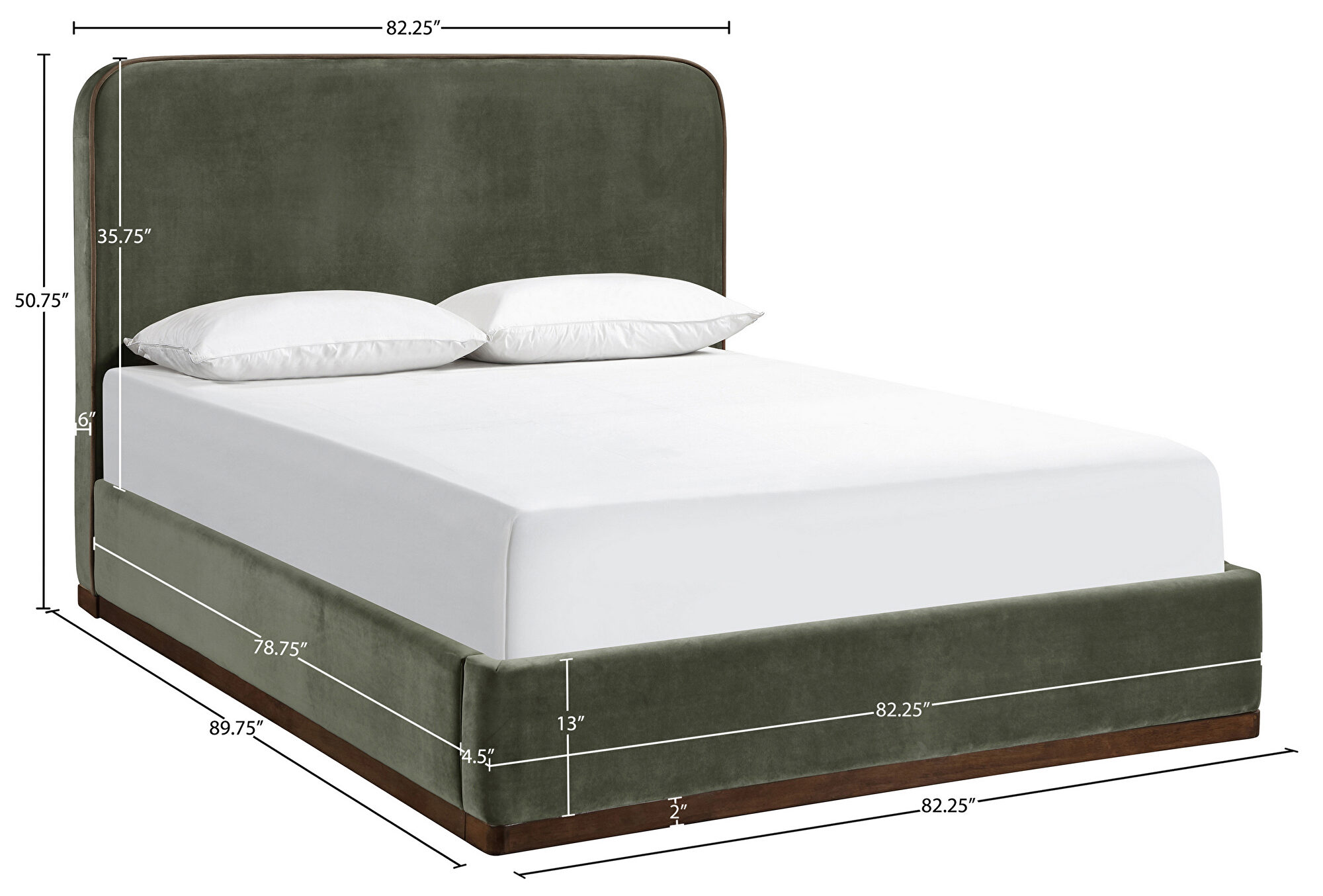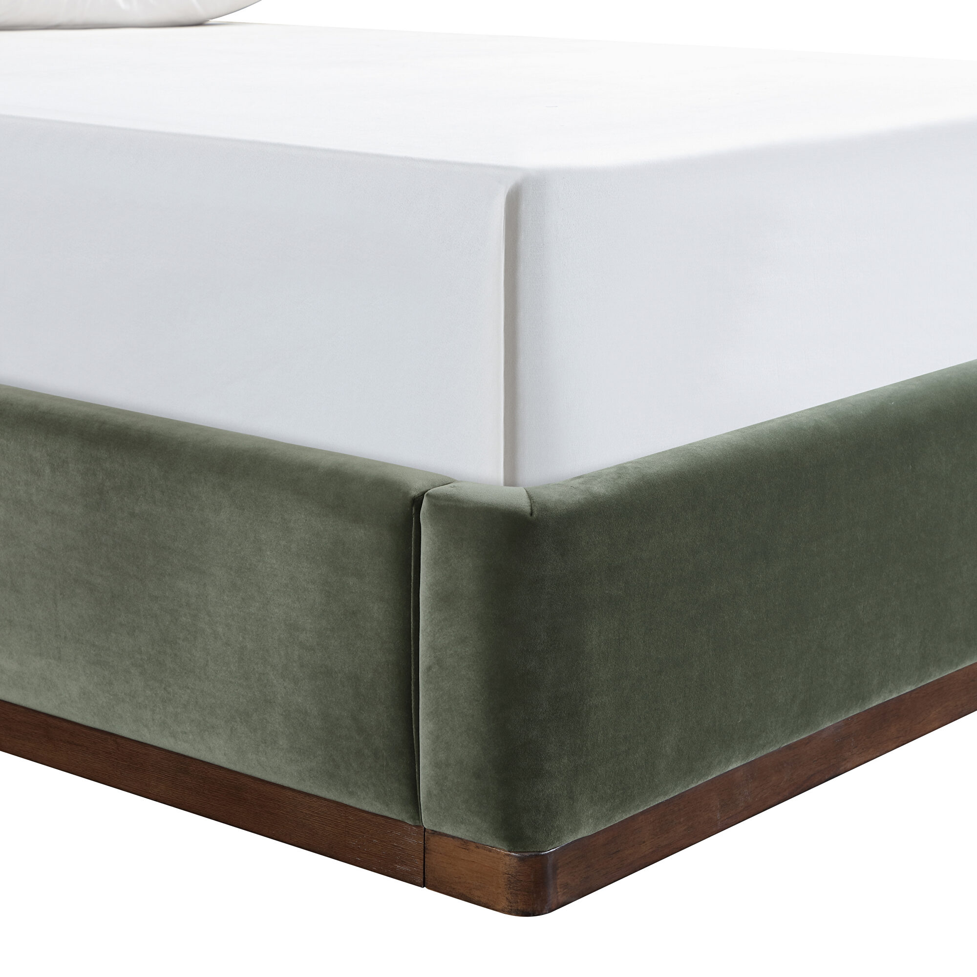 discountRava green fabric upholstered king bed w/ walnut wood base
