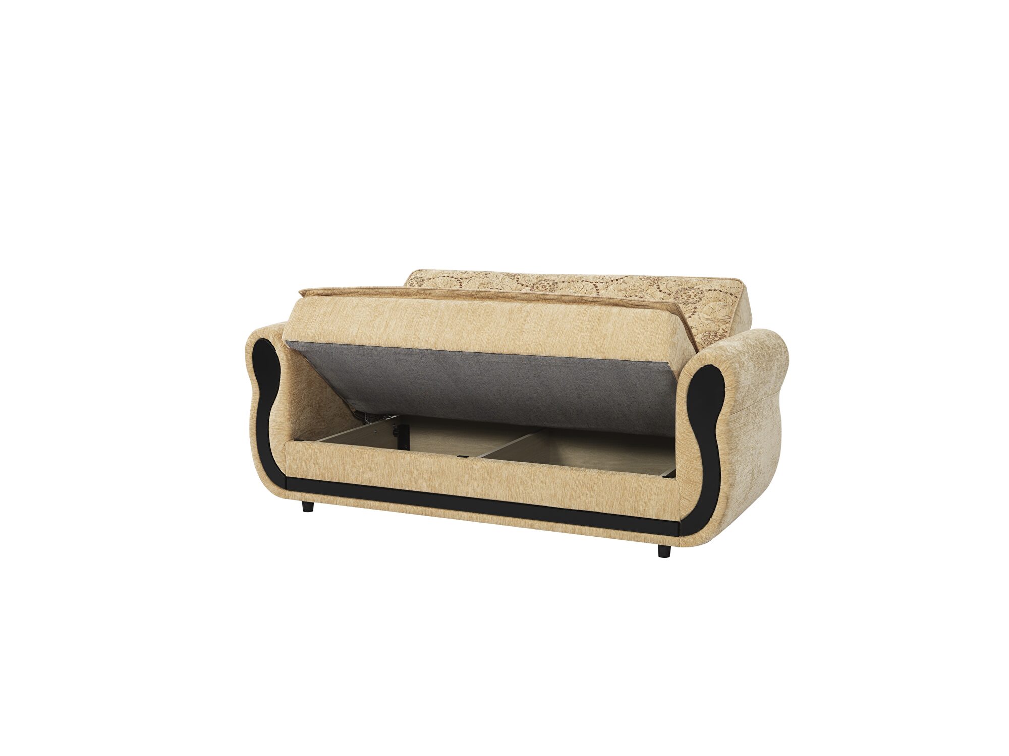 This casual style loveseat in beige chenille fabric is perfect example of traditional style mixed with flexibility. Add matching pieces if needed. Every piece features storage underneath and can be easily transformed to bed. Bed sleeping size for sofa:74.8 X 45.3, loveseat: 54.7 X 45.3, chair: 45.3 X 23.2.Features:
