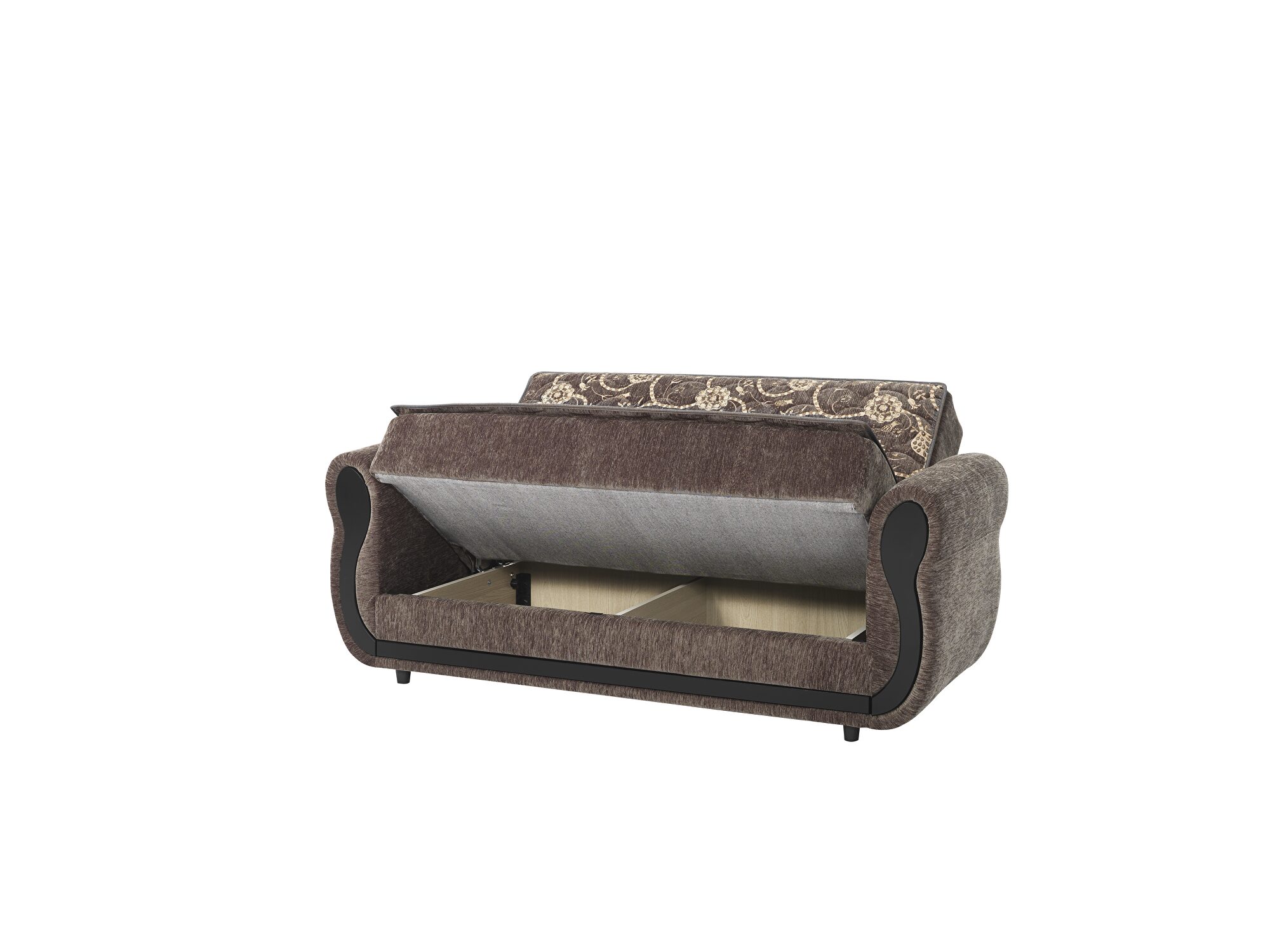 This casual style loveseat in gray chenille fabric is perfect example of traditional style mixed with flexibility. Add matching pieces if needed. Every piece features storage underneath and can be easily transformed to bed. Bed sleeping size for sofa:74.8 X 45.3, loveseat: 54.7 X 45.3, chair: 45.3 X 23.2.Features: