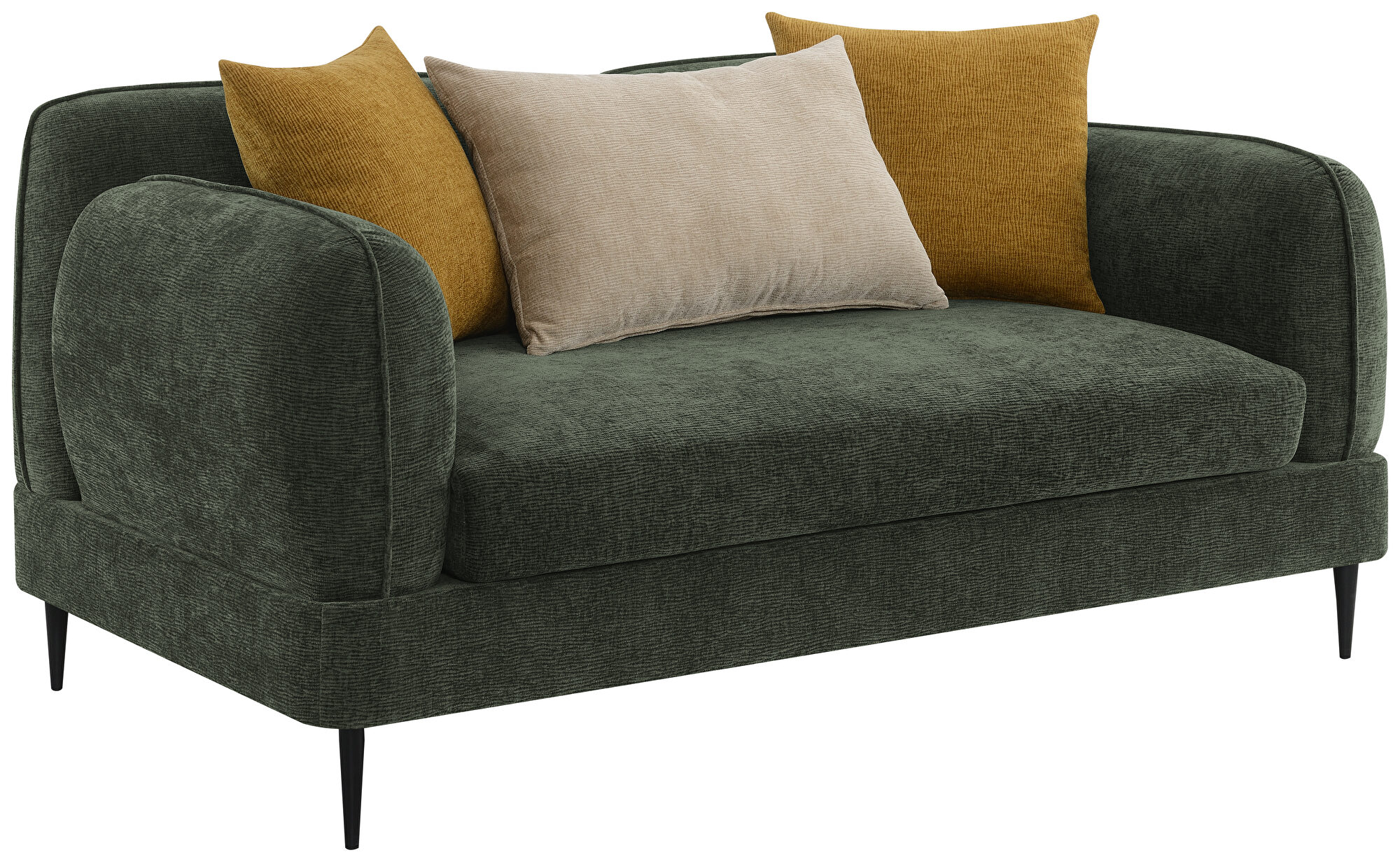 Jade green chenille fabric low-profile modern loveseat