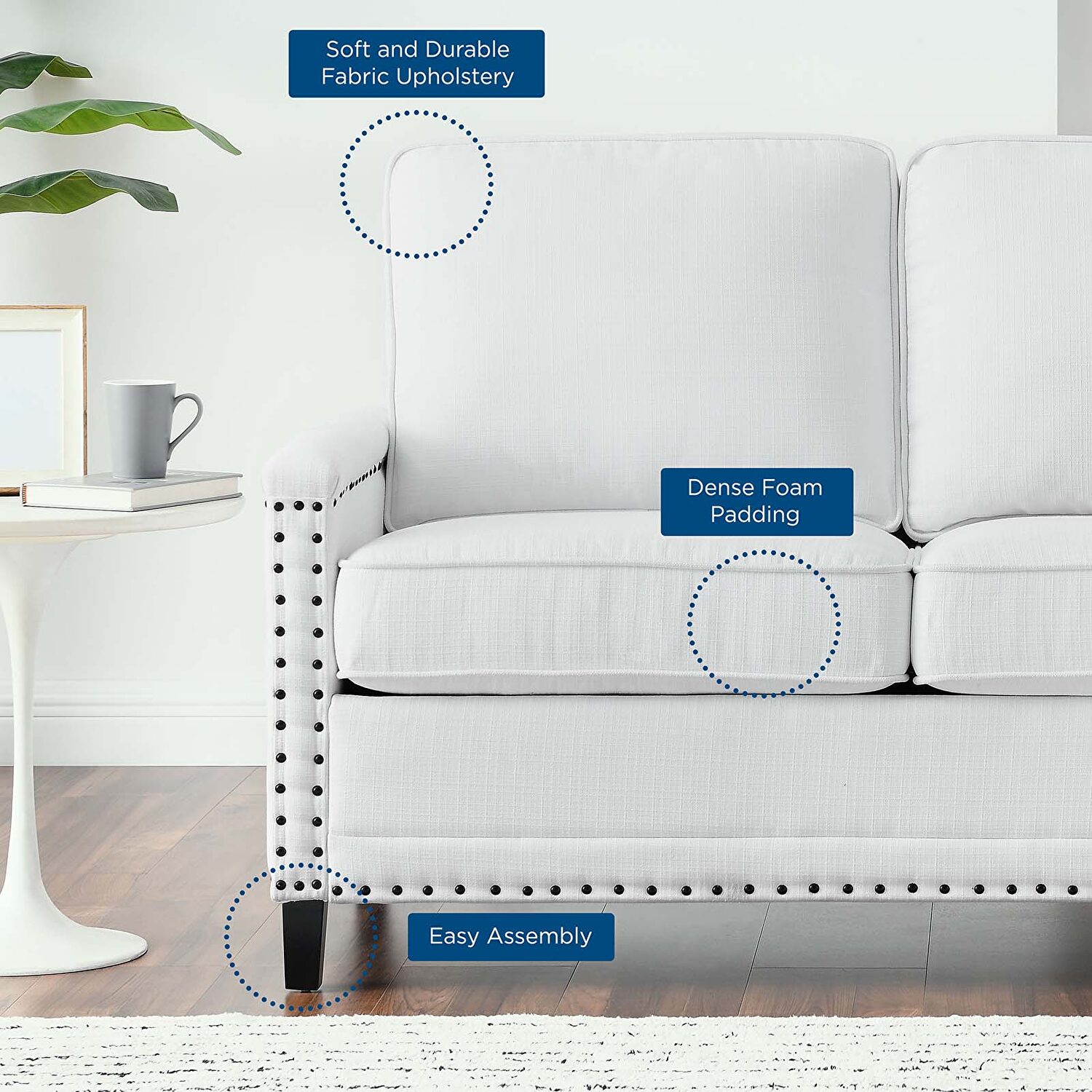 SKU: EEI-4985-WHIAshton upholstered fabric loveseat in white