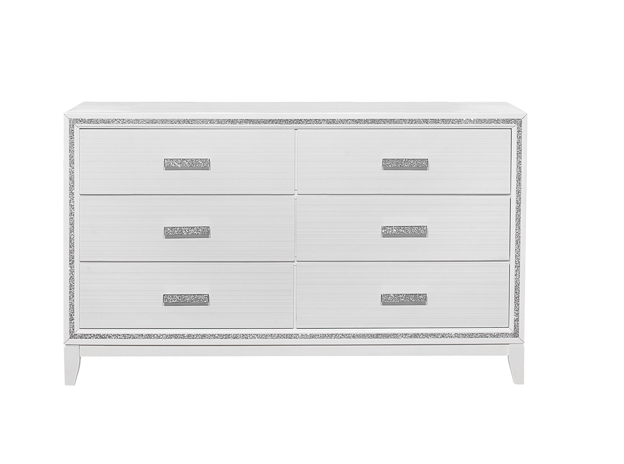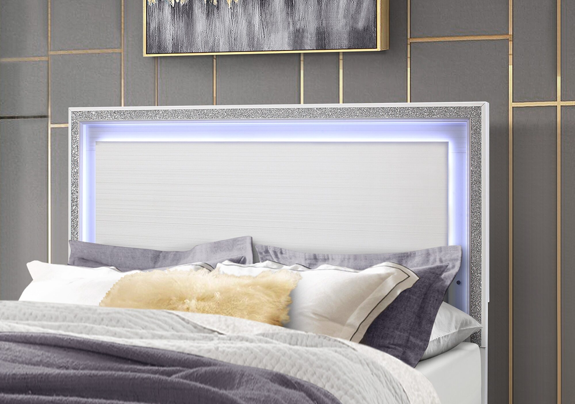 Embark on a journey where timeless elegance meets contemporary charm with our Lily Bedroom Collection. This exquisite bedroom set marries the sophistication of classic design with the allure of modern accents, delivering a stunning transitional glam aesthetic to your personal sanctuary. The eye-catching crushed crystal-like detailing captures the light and exudes luxury across every inch of this collection, while the strategically placed LED lighting illuminates the headboard, creating an enchanting atmosphere that soothes and impresses.The intricate crystal-like embellishments don't just highlight the contours of each piece; they extend to the custom hardware, seamlessly blending form and function. The result is a cohesive, dazzling effect that makes the Lily Bedroom Collection a true masterpiece of interior design.