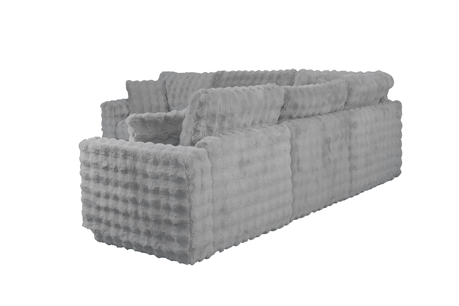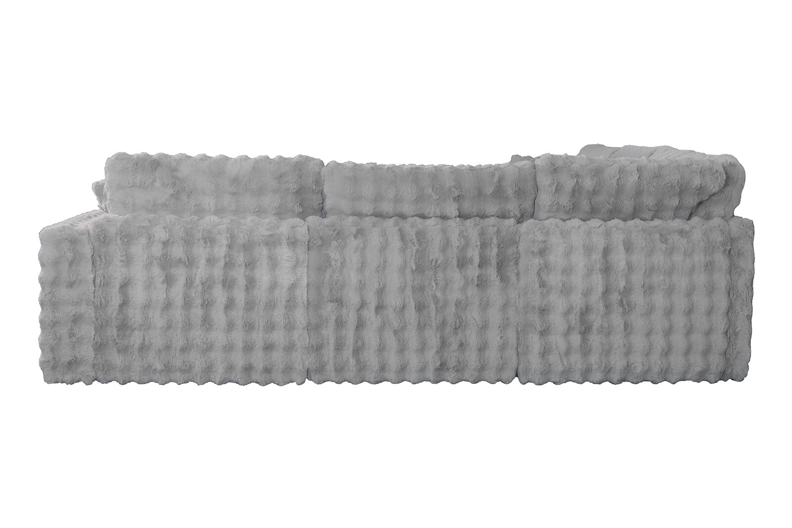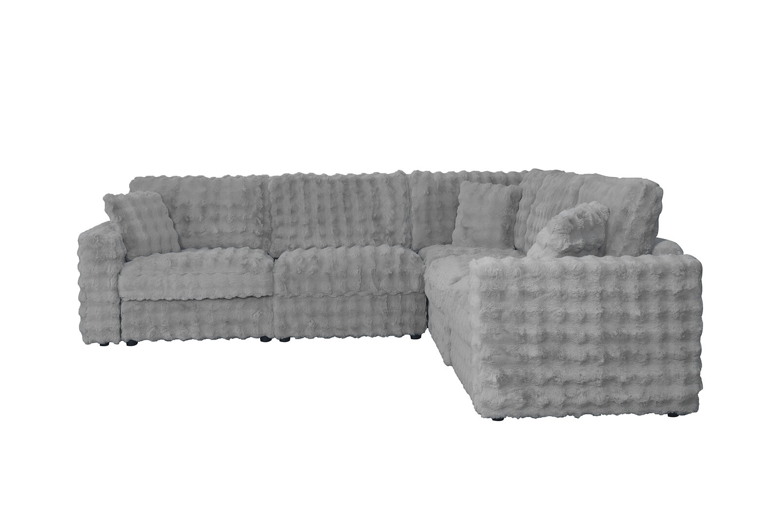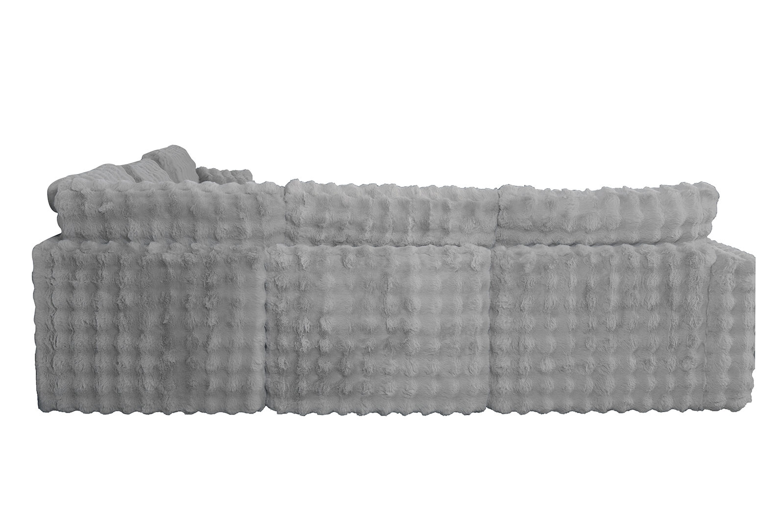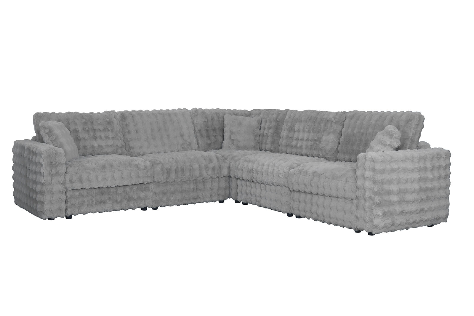 McKenna Contemporary Modular Sectional — Gray FabricRefresh your living space with the McKenna sectional, a contemporary modular sofa that blends clean lines with cozy comfort. Upholstered in durable gray-colored fabric with contrasting faux-fur accents, McKenna offers a stylish, layered look that works in modern and transitional interiors. The sectional sits on a sturdy iron and wooden frame and features track arms for a sleek profile. High-density 1.8 lb foam seats deliver resilient support while fiber-filled back and accent pillows provide plush, cloud-like comfort. Modular pieces let you configure the layout to suit your room - from compact loveseats to spacious lounge arrangements—making McKenna both fashionable and functional.