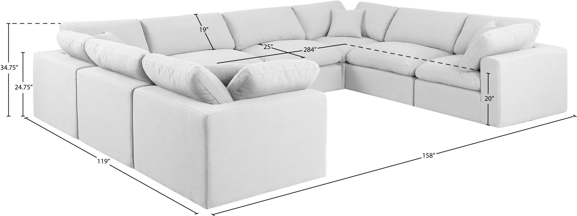 Transform your living space into a haven of elegance and comfort with our luxurious white sectional, meticulously crafted from a linen textured fabric. This 8-piece set, consisting of 4 wedges and 4 armless chairs, offers a modular design that blends seamlessly with the Comfy collection, enabling you to create a personalized seating arrangement that fits your space and style preferences.Designed with versatility and sophistication in mind, each piece of this sectional encapsulates adaptability without compromising on aesthetic appeal. The rich white upholstery, made from durable linen textured fabric, exudes a timeless charm that elevates any room decor.